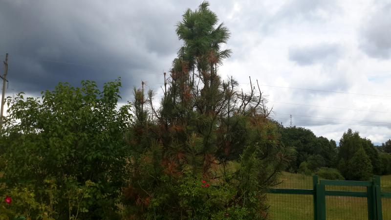 Другая причина, которая способна превратить молодые побеги в голые свечки - это сосновый пилильщик. Но это совсем другая история, его личинок можно увидеть невооруженным глазом.