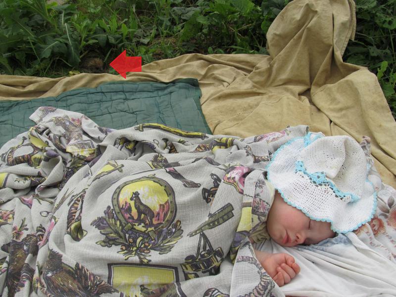 Ребенок уснул на даче под деревом, сфотали и увидели..... Это ёжик, если плохо видно :girl_wink:
