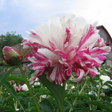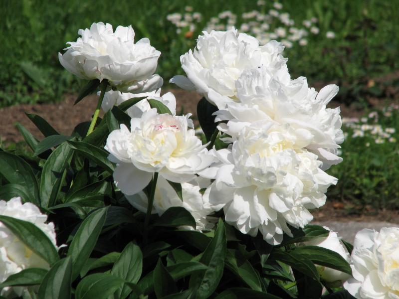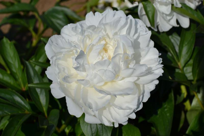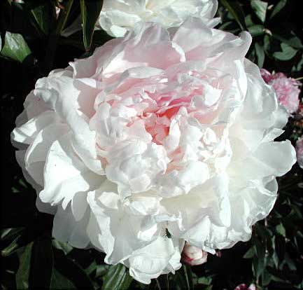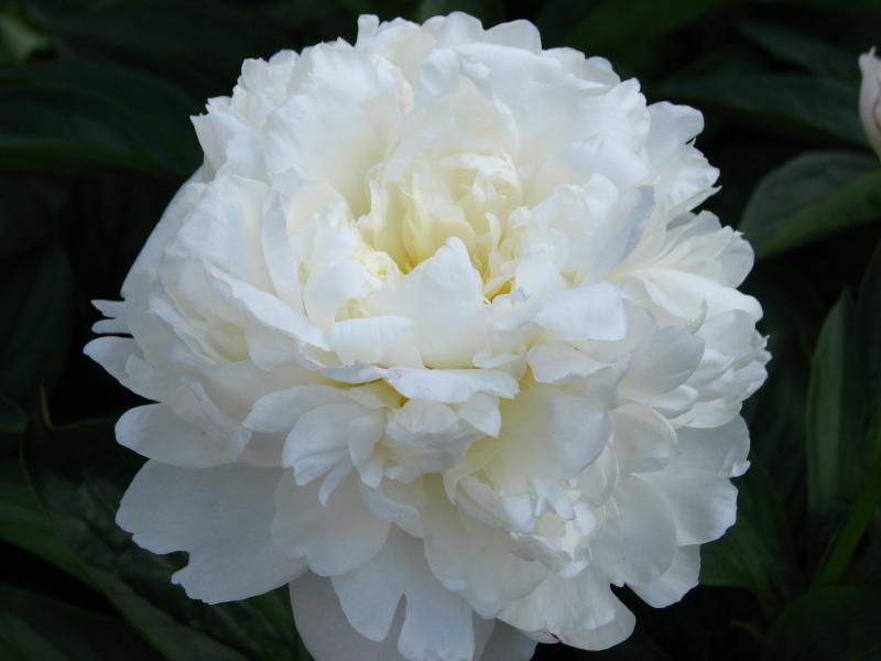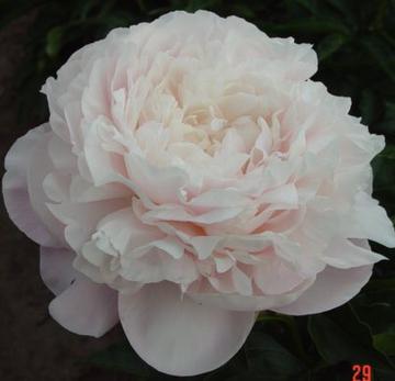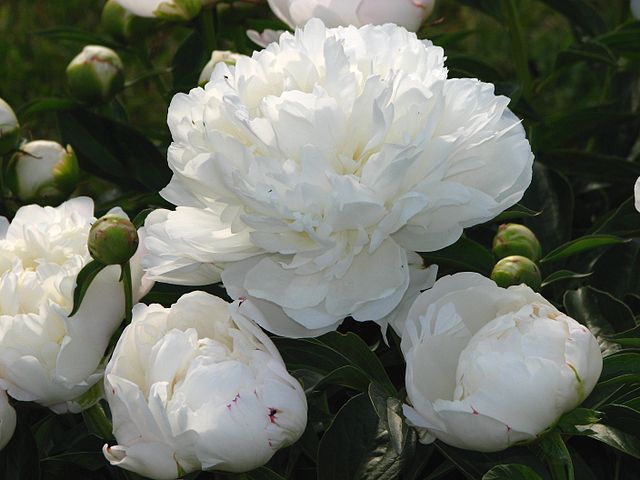 Официальное описание цветка: чисто-белый, двойной махровый, среднего или крупного размера на сильном стебле средней высоты. Лепестки перекрывающиеся и симметрично расположены. Цветок прекрасной консистенции и хорошо стоит в срезке. Часто на цветках имеются красные штрихи на нижней стороне покрывающих лепестков которые никогда не проявляются внутри цветка что делает этот сорт самым чисто-белым из всех.
