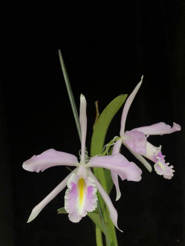 Cattleya labiata var. foleyana - белые петалии и сепалии, а губа покрыта бледными розово-красными пятнами.