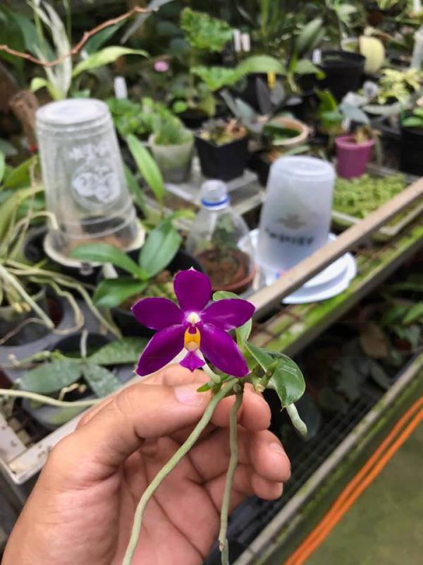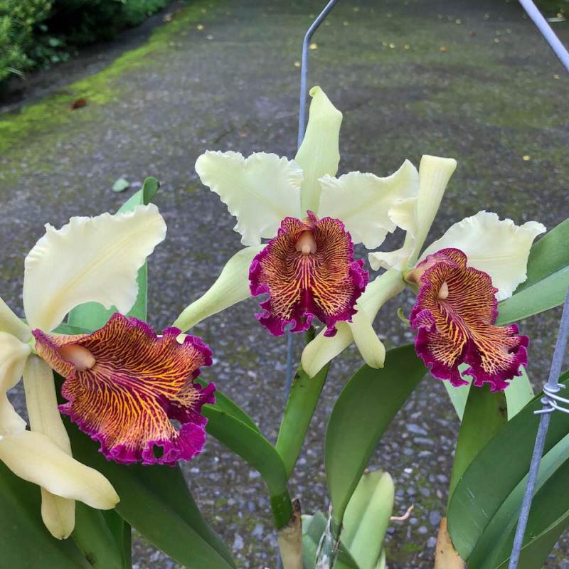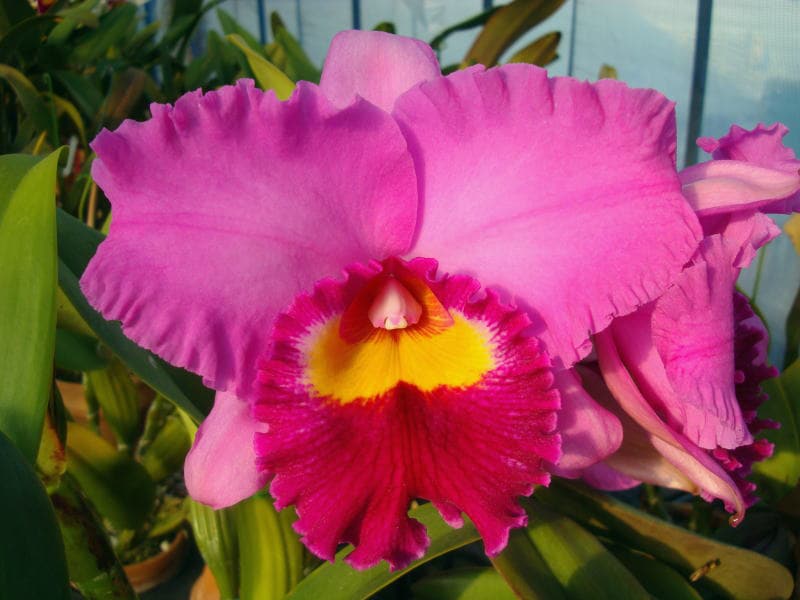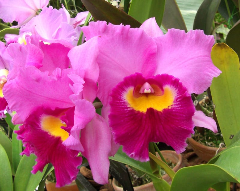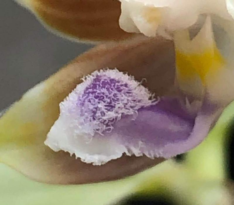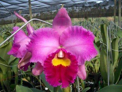 Cattleya labiata var. peetersii - тепалии тёмно-пурпурные, губа более светлая с тёмными прожилками, внутри жёлтая, также с тёмно-пурпурными прожилками.