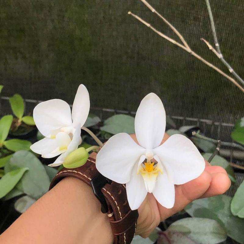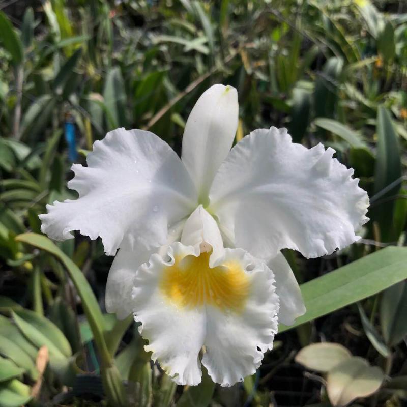 Cattleya labiata var. alba - цветы чисто-белого цвета с небольшой долей бледно-жёлтого внутри губы.