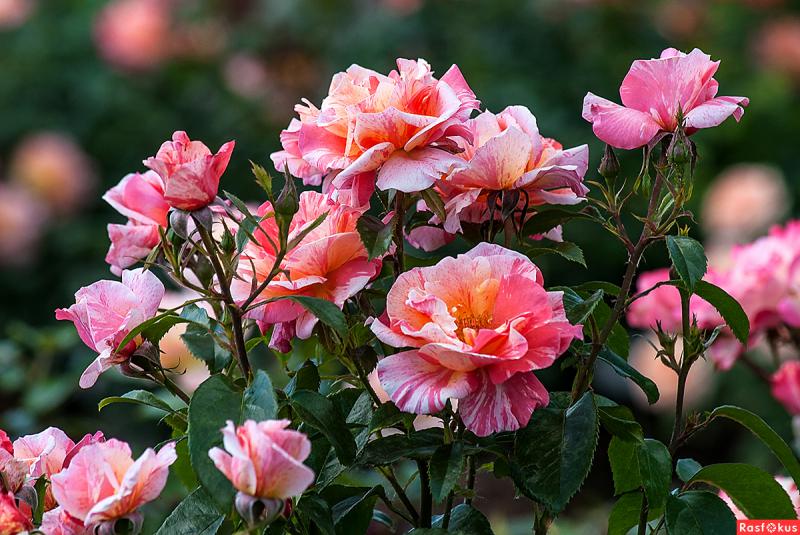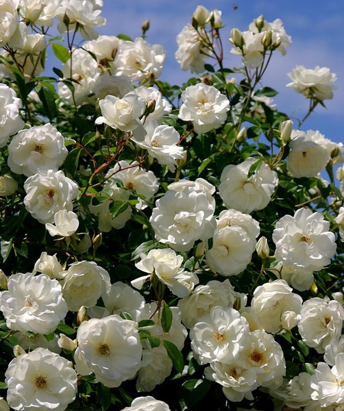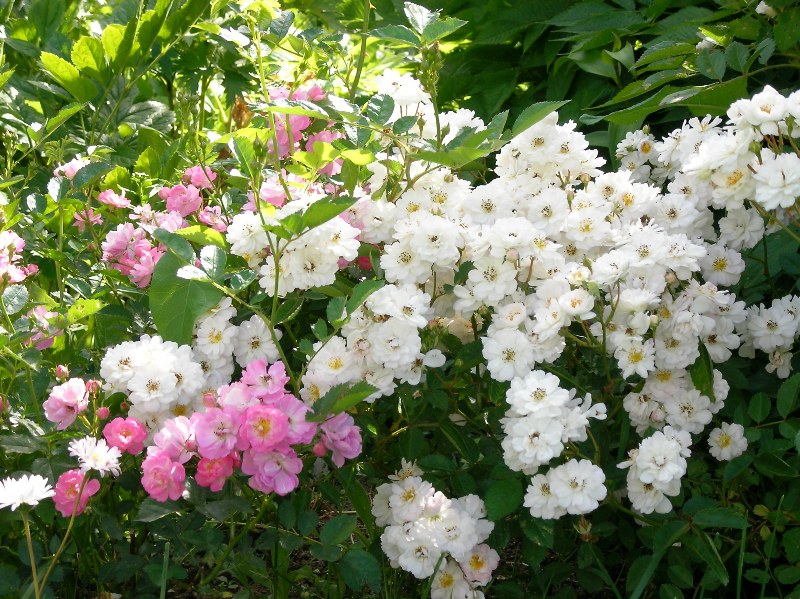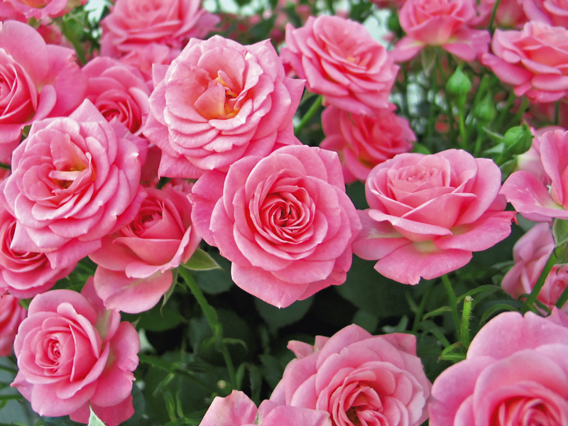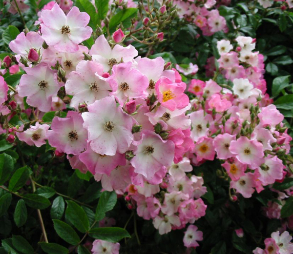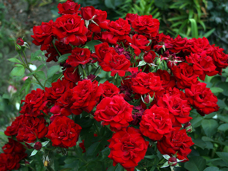 Полиантовые – компактные, густые, сильноветвящиеся кусты с мелкими (3-4 см) цветками (от 20 и более 100 шт в соцветии). Аромат присутствует редко, цвета обычно розовые/красные, иногда белые. Махровость разная – от простой до густой. Устойчивы к сырости и грибным заболеваниям. Цветение обильное и продолжительное – до поздней осени.
