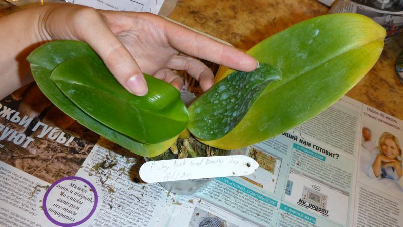 Растение было залито вусмерть, о чем ещё говорить?... Если его почистить (на втором от верха листке похоже желтизна к шее), то осталось бы растение с одним листом и совершенно без единого живого корня. Вот это безобразие я бы получила, если бы жила в Москве...