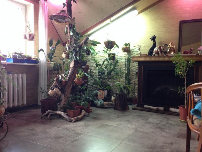 Если кратко о конструкции. Фундамент-плиты, единый с домом. Отдельно делать не советовали, так как может вся конструкция отходить от стен. Фундамент внутри засыпан землей, последний метр -керамзит. Есть сток на улицу, но обычно керамзит все впитывает, даже когда срывает поливочный шланг на улицу ничего не течет, все впитывается. Каркас-алюминий, это очень дорогая конструкция и делали на заказ. Окна пластиковые. Отопление конвекторами, они ничего не сушат но надо брать алюминиевые, иначе ржавеют. Мне вот свои надо менять, брала железные. Пол плитка с водяным подогревом. Полив автоматический, смесь 2-х систем Гардена и Хозелок, муж монтировал самостоятельно. Есть маленький бассейн с кувшинкой и фонтан, но пока не работает, при скачке напряжения по-моему сгорел двигатель. Крыша- матовый поликарбонат, вентиляция естественная, окно под крышей и дверь на противоположной стороне. Ориентация южная. Отопление-общий котел. Зимой около 5000р только на отопление зимнего сада уходит. На конвекторах стоят автоматические терморегуляторы, при жаре они отключают батареи для экономии газа. Есть датчик температуры, при понижении до +8 шлет СМС и я дополнительно включаю электрообогреватель, но это бывает редко, при -35 только. Температура зимой +10-+12 ночью, +20 днем, летом без отопления прибавляет +5 градусов к уличной температуре. И еще окна летом притеняю жалюзями, иначе все горит. Зимой жалюзи открываю. Дополнительно освещения нет, естественного хватает и даже с избытком летом. Климат-субтропики, фалики выращивать не получится, замерзнут. Только каттлеи, дендры, цимбидиумы.