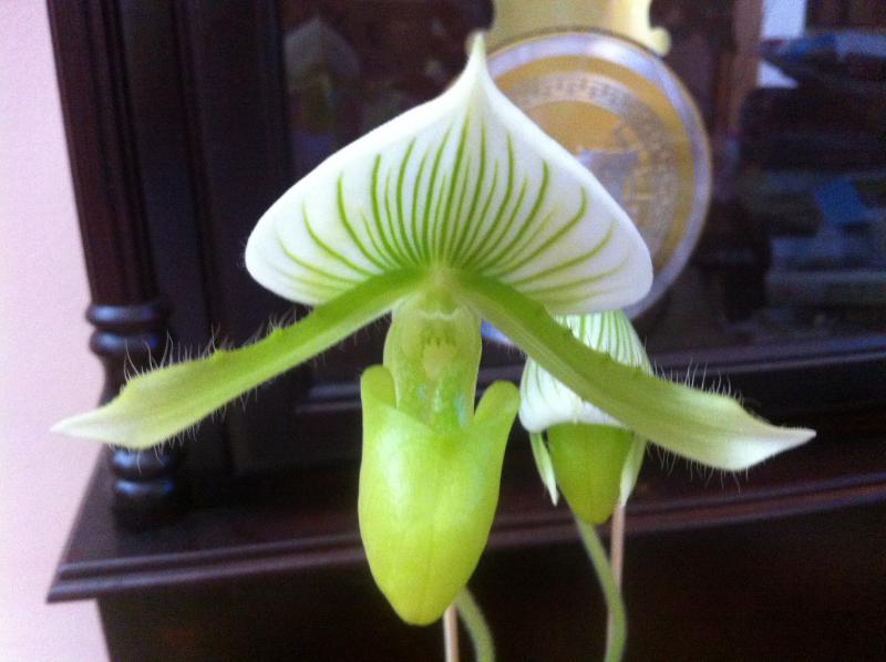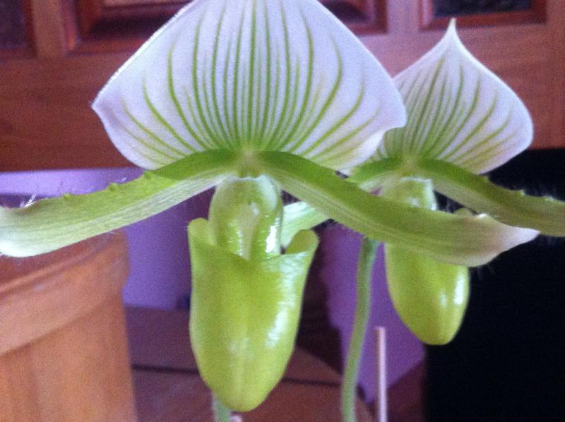 если Вы про P. Chienlung Black Parrot, то на втором фото реальный цвет - очень яркий, действительно попугай. Запах нет, во всяком случае пока (3 день цветения). Содержание даже жаркое, стоит прямо под лампой. Поставщик Cuang