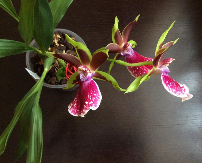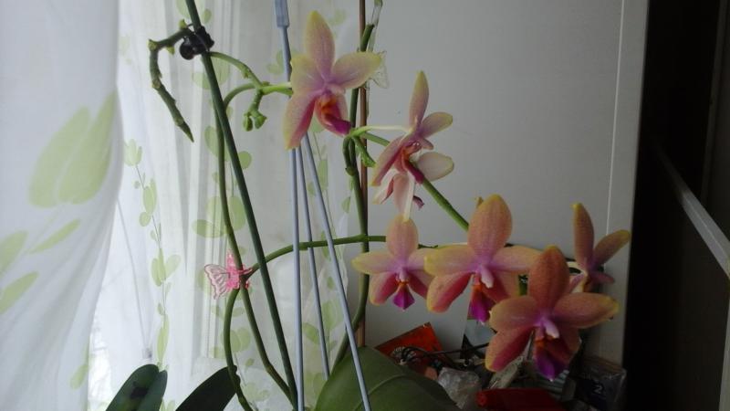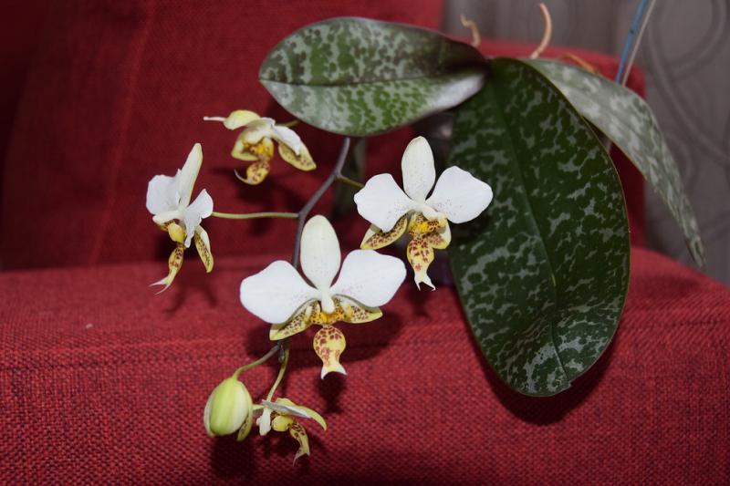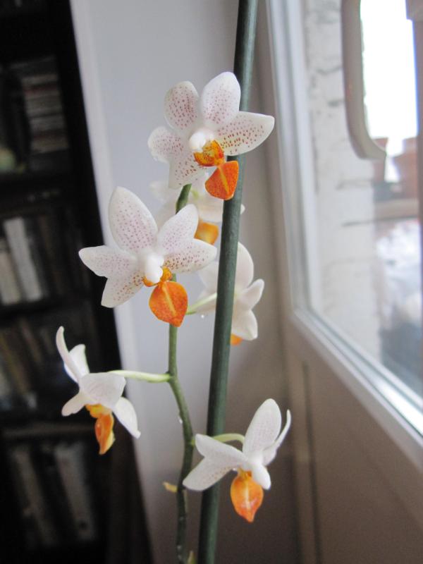 И безымяшка (хотя название все же было - Phal. Leonardo) купленная еще полтора года назад, второе или третье домашнее цветение.