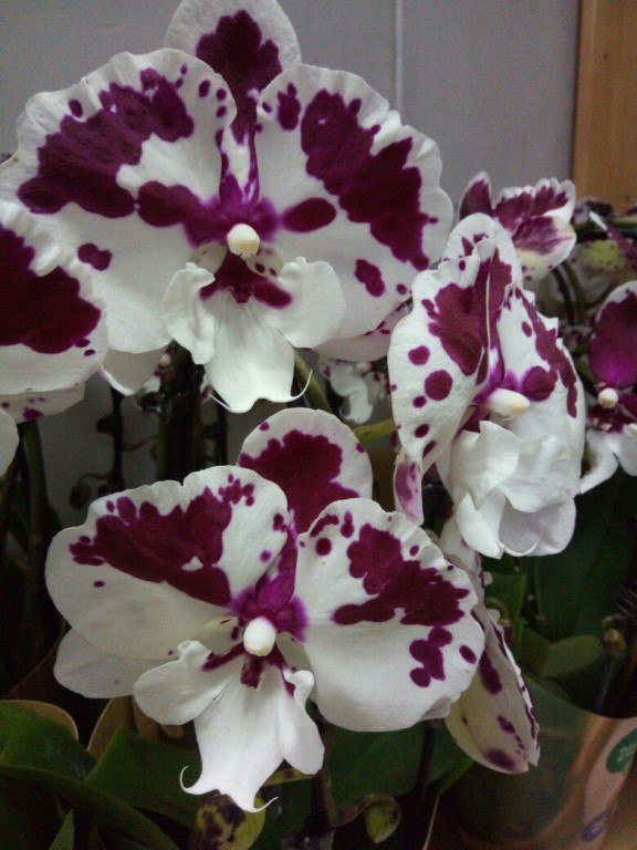 Это чудо было куплено в IKEA или OBI или в каком-то другом подобном месте. Незарегистрированный в RHS "голландский" сорт из каталога великого и могучего голландского орхидного монстра Anthura - https://www.anthura.nl/wp-content/uploads/2016/05/Phalaenopsis_LORES.pdf (стр.37)