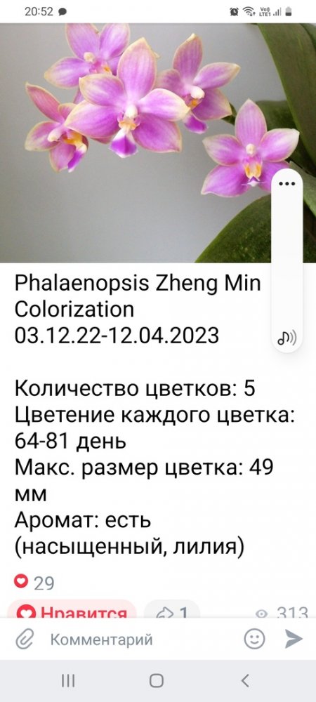 Уважаемые орхолюбы, хочу заказать такое растение. У кого оно есть? Как себя чувстыует у вас. Долго ли ждали заказ?. Ароматит ли. как заявлено (слышала, что аромат схож с лилией)?1HojdCOAtKk.jpg