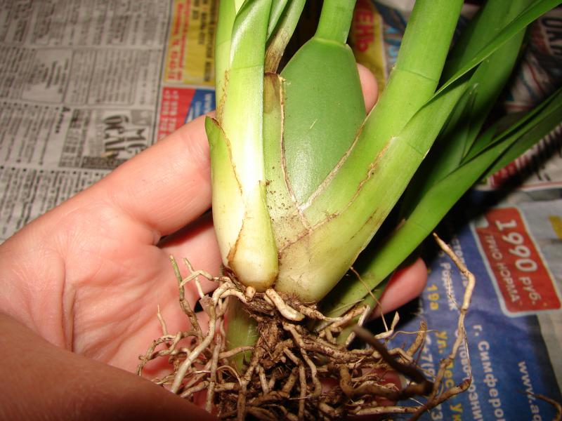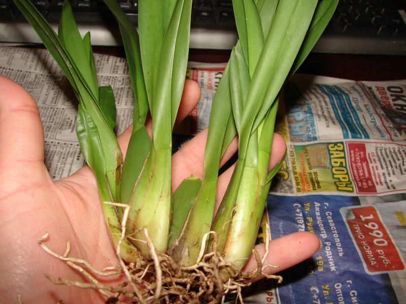 2) Burrageara Nelly Isler 4 взрослых бульбы и 2 роста. Отцвела. На старых бульбах корни не фонтан, новые росты корнятся. 600р