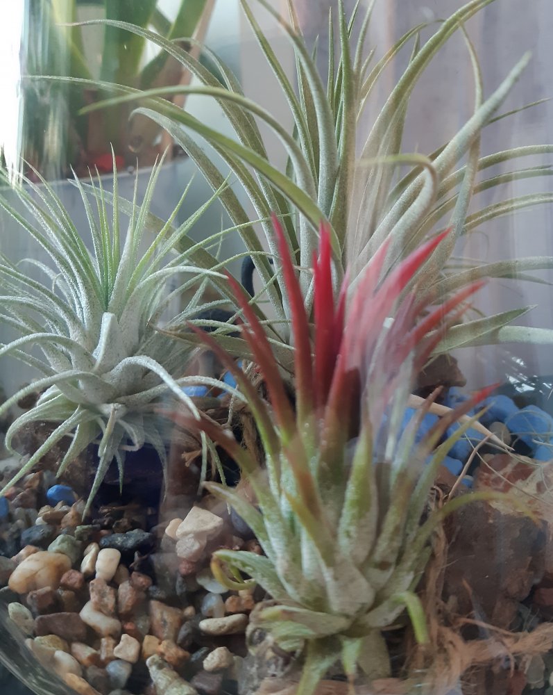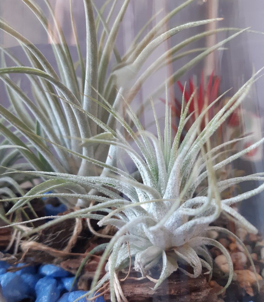 Прикупила себе 3 вида тилландсий: Ionantha Fuego (с красным), Ionantha Silver (серебристая, 2 шт), Kammii (больше размером).