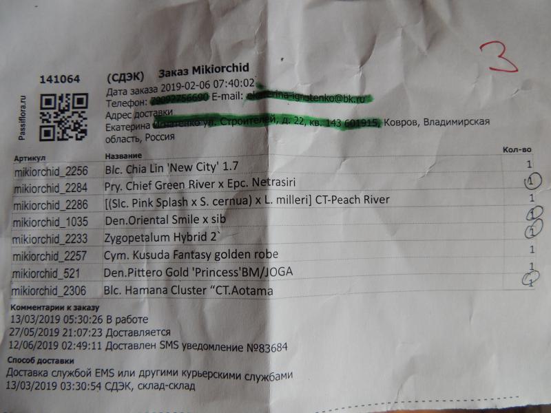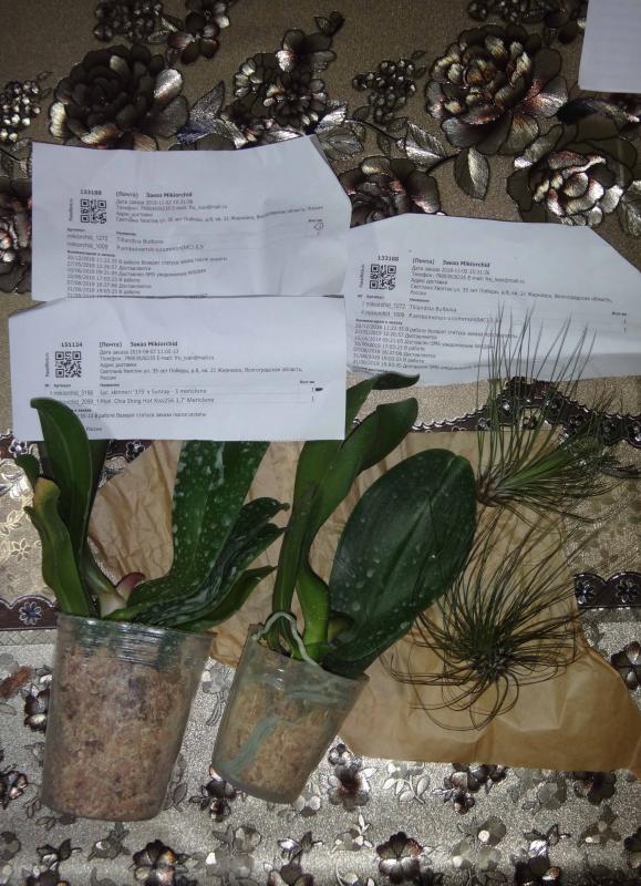 И еще в пути какой-то досыл по заказу 144146, письмо пришло 09.09. Похоже, что Бульбозу заменили на Андреану. Еще склоняюсь к тому, что часть растений высланы дважды. Что со всем этим делать непонятно, так как вернуть растения не представляю возможным (на упаковке коды сорваны, маркерных отметок не нашла, по внешнему виду все 3 неопознанных фаленопсиса разные).