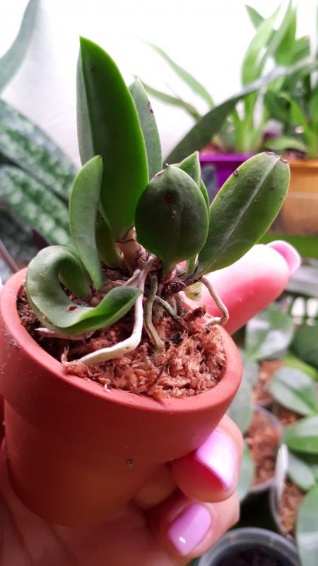 На упаковках были номера (1 и 2), других опознавательных наклеек/бирок увы, нет. На фото слева направо предположительно Lc.Cariad's Mini-Quinee'Angel Kiss' и Blc. Chian-Tzy General 'CT-Smile Angel . В целом растения в очень неплохом состоянии, корневая в норме, ранее ни одно, ни другое не цвело, обе миниатюрные.. Но все таки несколько сомнительно, что растение пришедшее как Lc.Cariad's Mini-Quinee'Angel Kiss' таковым является. Если бы не все эти игры в "угадай где кто" заказ был бы поистине прекрасный.