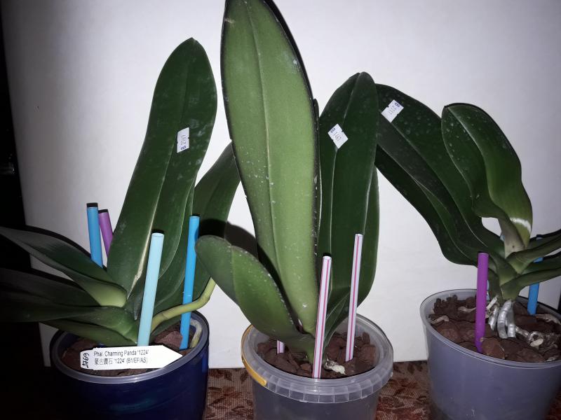 Phal. amabilis 'Brazil' единственный фаленопсис без отличительных примет и без единого опознавательного знака, если не считать нумера 2 на упаковке (порядковый номер растения в накладной). В общем до цветения будем условно считать его таковым. В целом растение шикарное, куча корней, прикорневая детка, идеальная ботва. Странно что растение такого размера и такой шикарной кондиции ранее не цвело (ни единого пенечка от цветоноса).