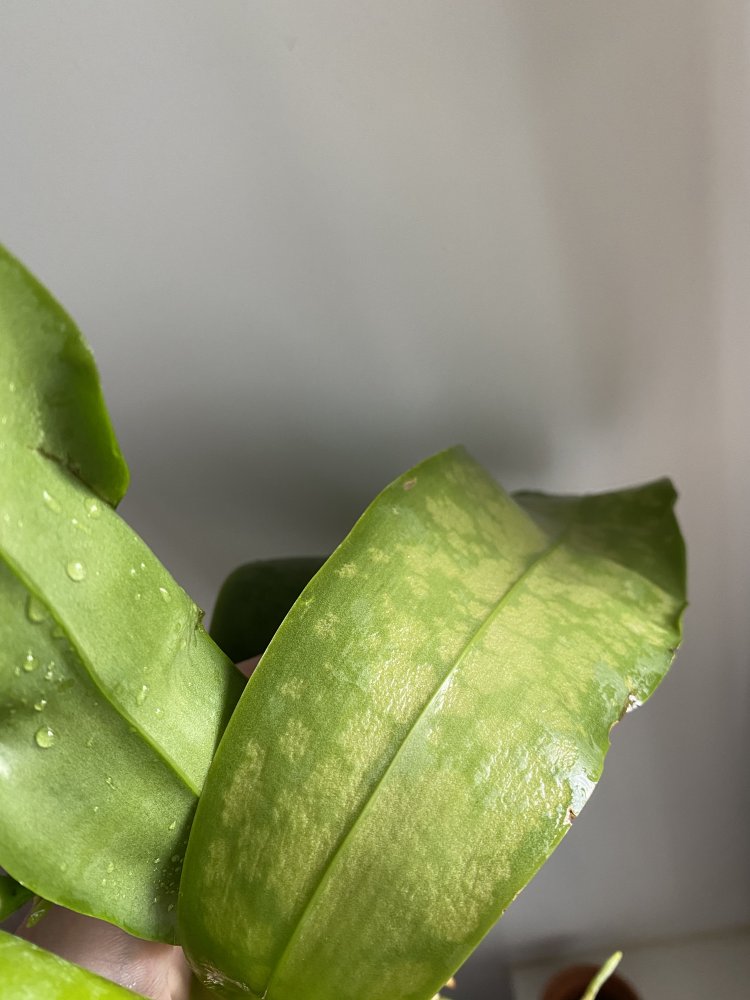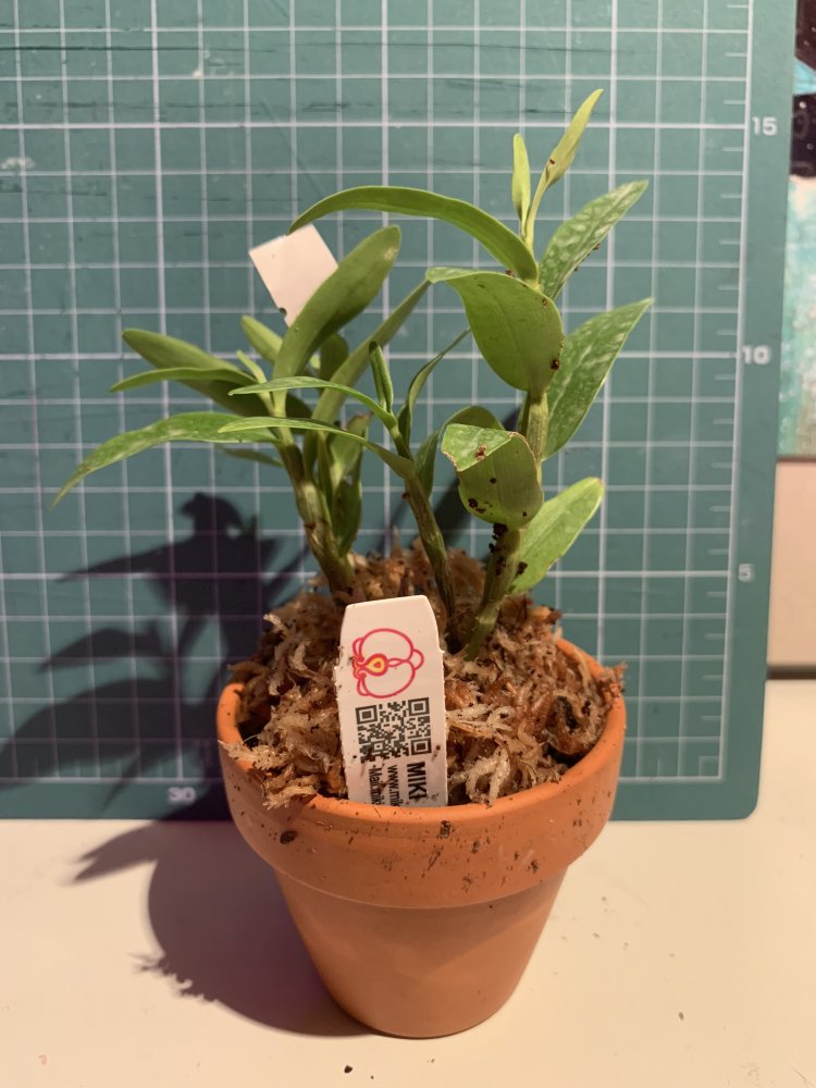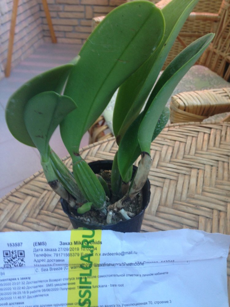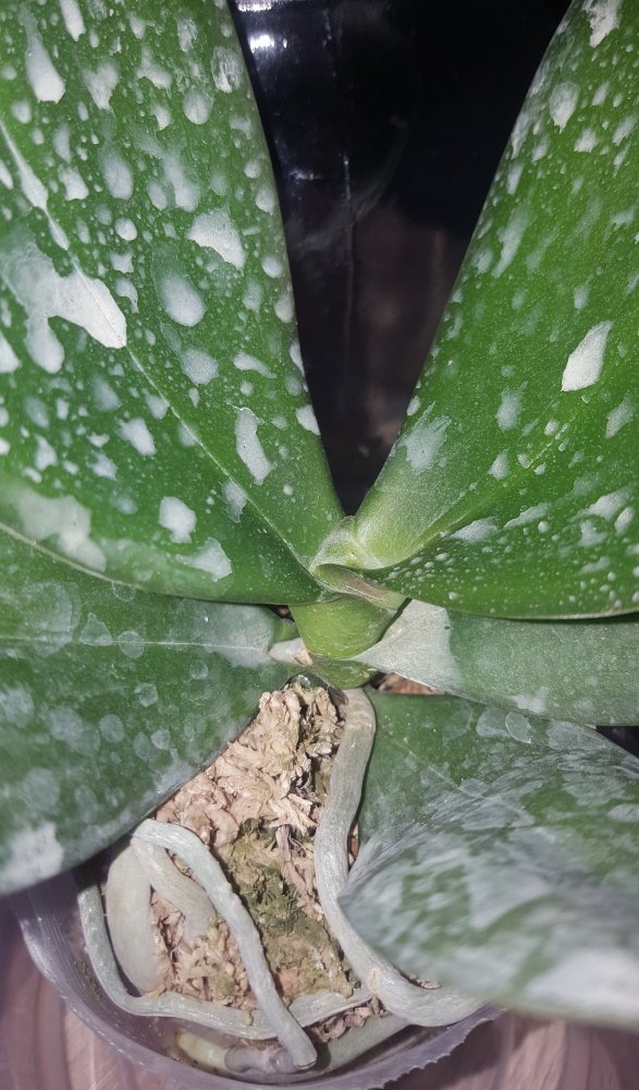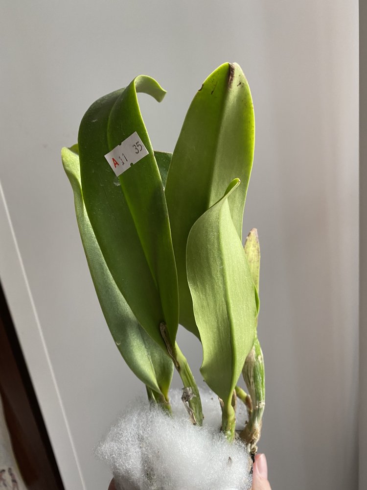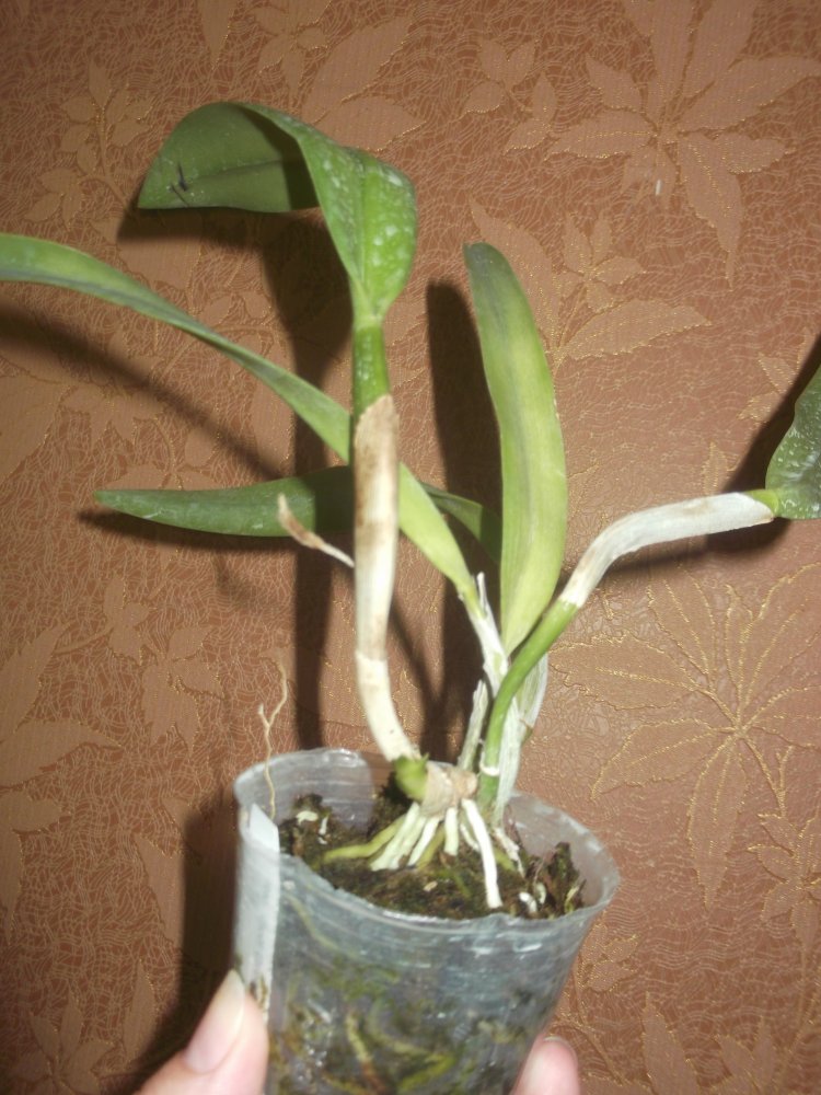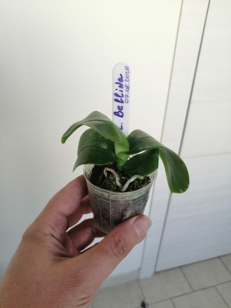 Из заказа пришло пока одно растение Phal. Tying Shin Fly Eagle x Phal. tetraspis 'C1' - 2,5. Мы переночевали дома, не устаю им любоваться, блестит, листики нежненькие, маленькая, но гордая пташка?. Из маркировки надпись В33 55 на обертке поставщика. От шеи что-то свежепробившееся, Скорее корешок.. Корней не много видно, наверно только пересадили, но те, что видны-растущие. Короче, ребята, довольна как слон я этой моськой. Будем ждать второго товарища из этого заказа, надеюсь, и он порадует.