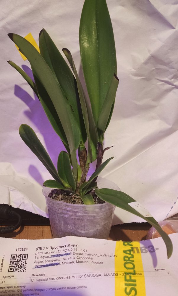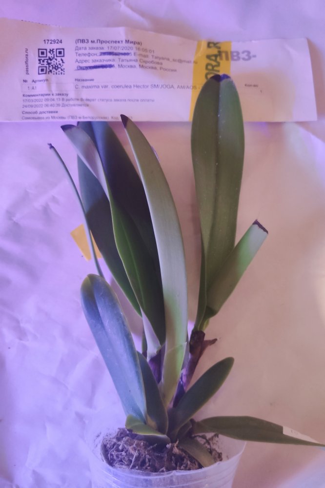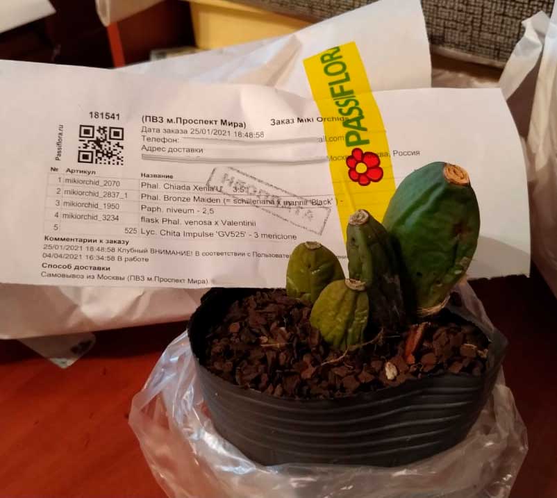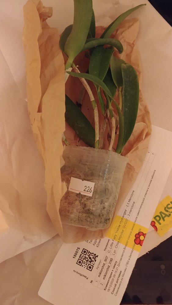Получен в ПВЗ на 2й день после смс. Было заказано 2 растения: c. Little Fairy 'Yellow Hydrangea' и lyc. Chita Impulse. Ожидание долгое. Пришла одна каттлея. Бирка с номером на горшке не соответствует накладной. Не другой вид, уже хорошо! Растение взрослое, миниатюрное. Ранее цвело. Есть живые корни. Живности не обнаружила.