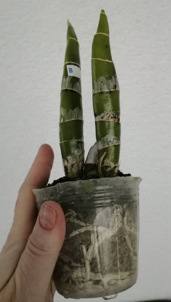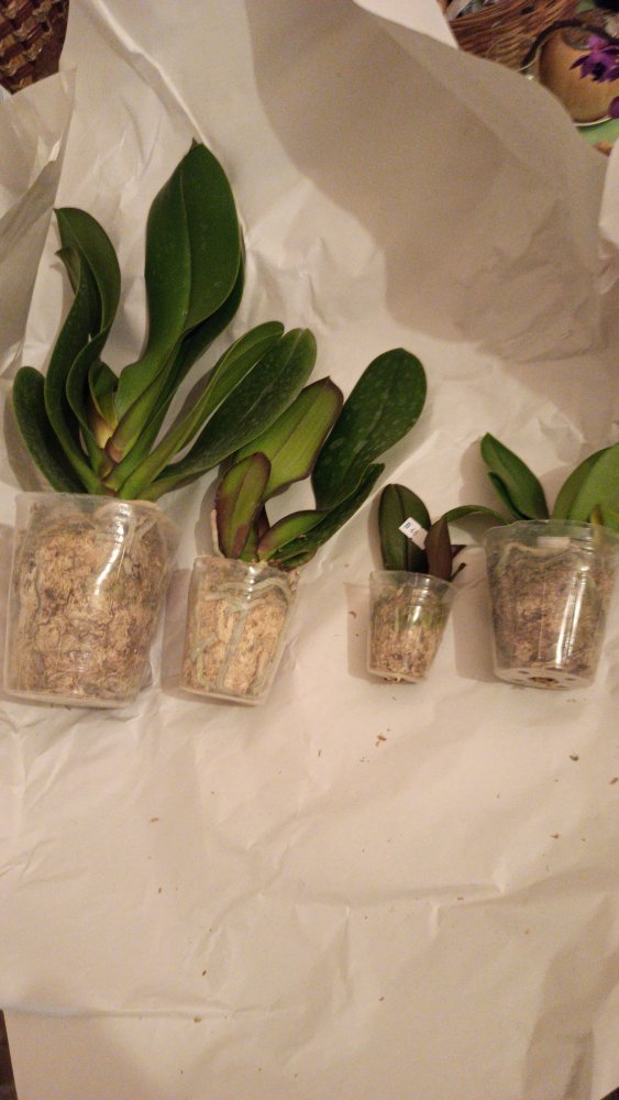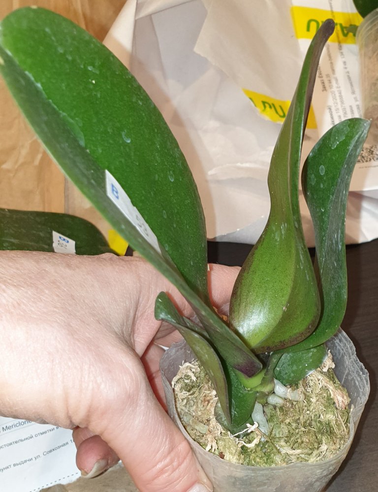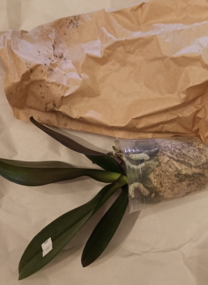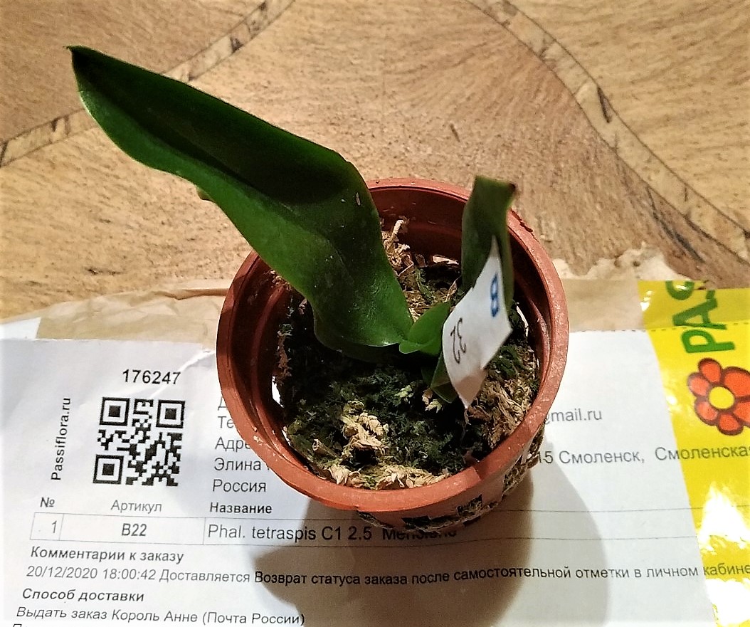 Три достаточно крупных растения в размере горшка 2,5 и одно 1,7. Мох хорошо просушен. Наклейка с накладной совпадает только у одного, два похоже на замену phal. Little Fox явно не присутствует, судя по размером, она должна быть миниатюрной. С тетрасписом все особо печально: он пришел с одним листом и тот отвалился. В размере 1,7, вряд ли сможет дать новый пост. Печаль 😢IMG_20221118_003606.jpg