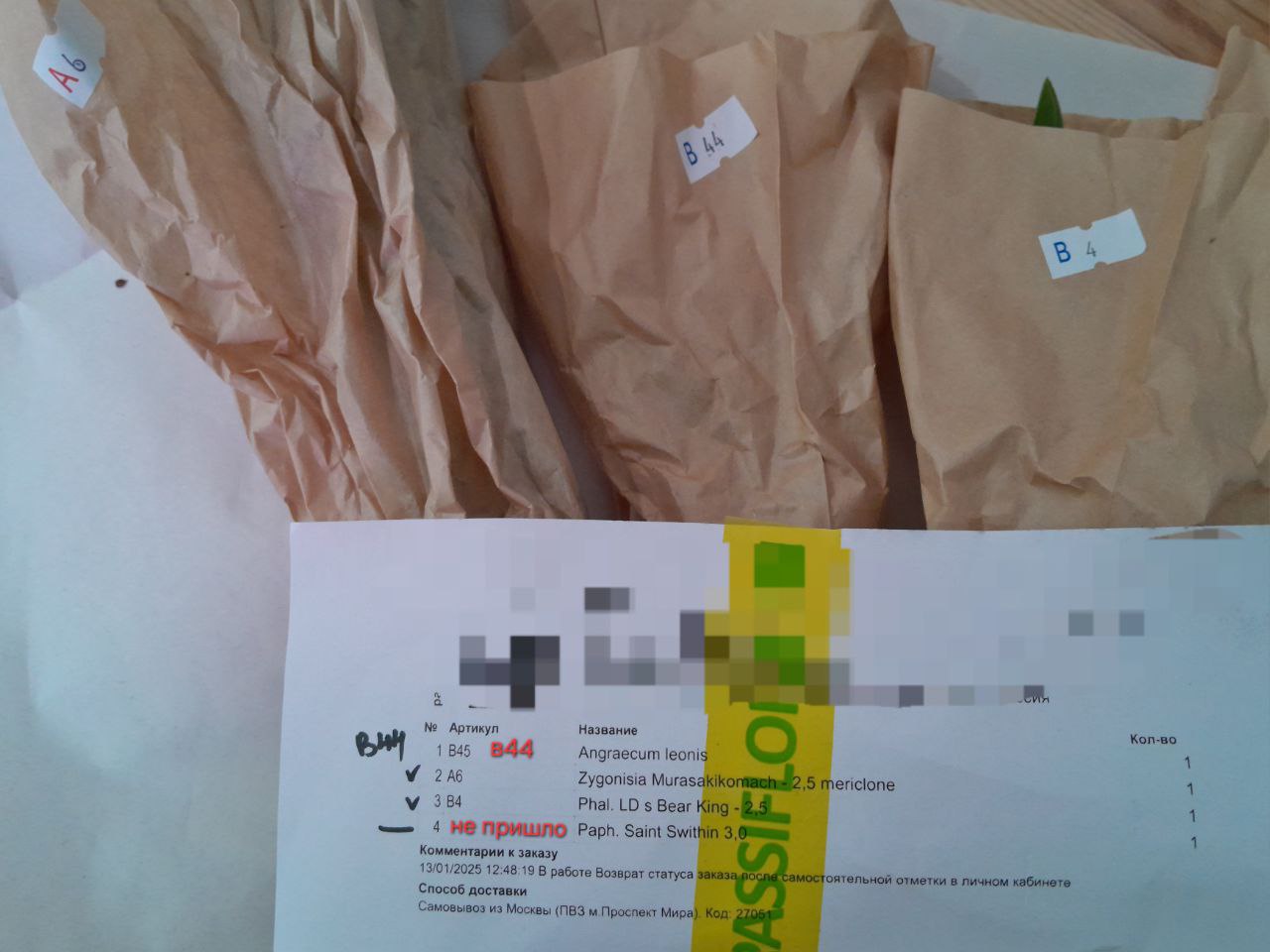 2 заказа, 4 растения: