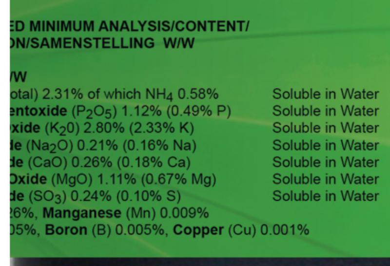 Пример маркировки удобрения произведённого в Великобритании: