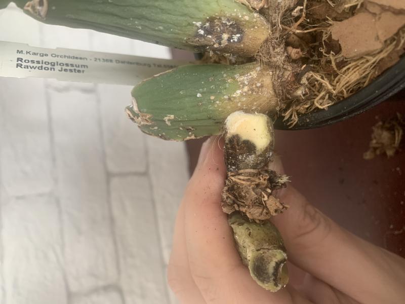 vinu6a, дальше пока не режьте, срез хороший. Замазывайте все зеленкой обильно, включая основание бульб с желтизной полностью, вместе с ризомой и черным пятном на одной бульбе. Дальше все это нужно держать в сухости, при поливе чтобы вода туда не попадала. Остановится, дальше гнить ничего не будет - хорошо. Если гниль продолжится, придется еще резать. По свету - Россиоглоссумы любят очень яркое освещение, как каттли по уровню. Но они прохладного содержания. Поэтому летом в жару на солнце содержание не подойдет из за слишком высокой температуры. Вы писали, что южные окна, поэтому ему там будет летом жарко, лучше сразу под хорошую яркую лампу. Зимой спит. По поливу - в период роста обильный. Но сейчас корней нет, плюс гниение, поэтому пока достаточно будет пару раз в неделю увлажнять верхний слой субстрата. Ни в коем случае не попадайте водой на новый рост, особенно внутрь, моментально загниет с первого же такого попадания воды. Как итог - сейчас самый сложный момент в его выращивании, нужно подлечить и начать заново выращивать корни и зеленую массу. В дальнейшем будет совершенно беспроблемным растением, поливай да расти)).