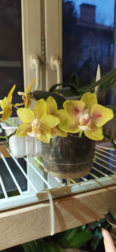 Растение получила с прошлой поставкой от Мики. Расцвела сладкая девочка не по сорту, буду продавать, подскажите пожалуйста как называется, предполагаю что это phal. Golden pixie, но не уверена.