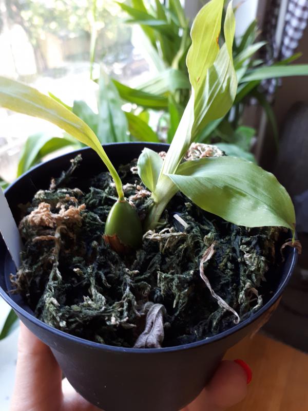 Также хорошенькое небольшое растение в горшочке 10 см. Корни живые. И также подозрительно похоже на Zga. Nusa Dua Green Peace x Zga. Freestyle Meadows Jester. Какое из двух последних растений из которого заказа, понять невозможно. Таким образом, имею 2 опознанных и 3 неопознанных гибрида зигопеталума.