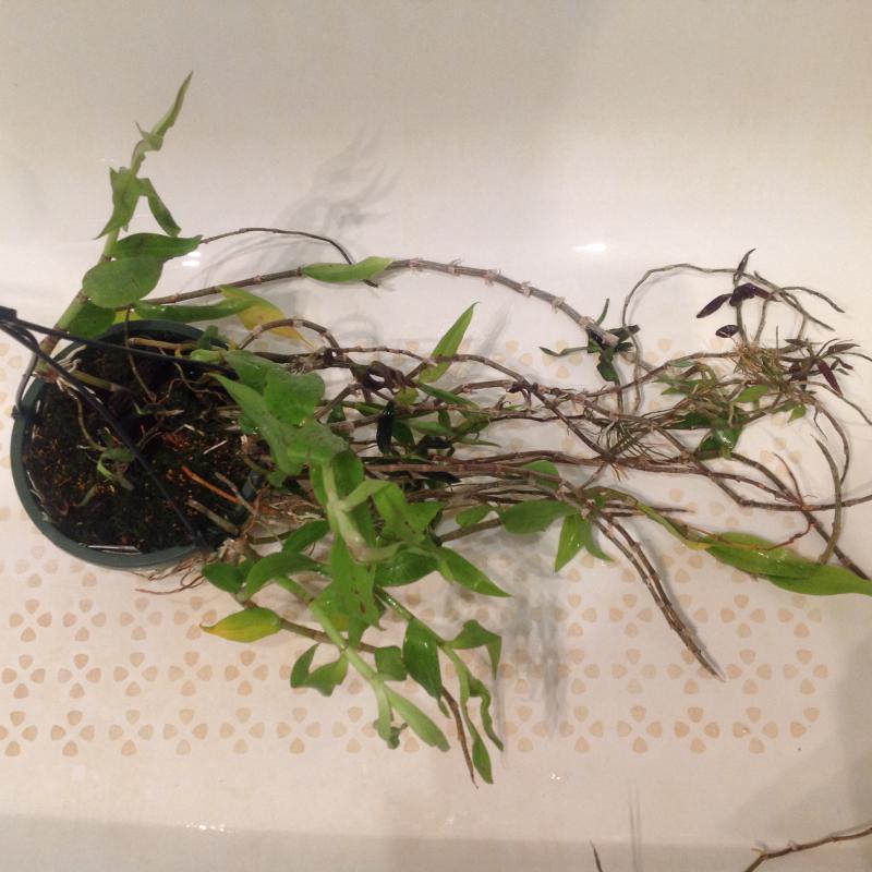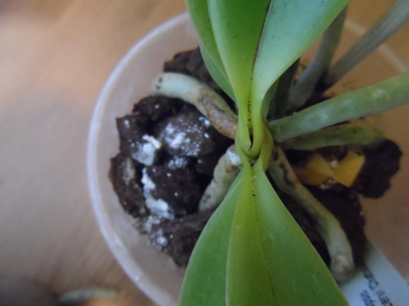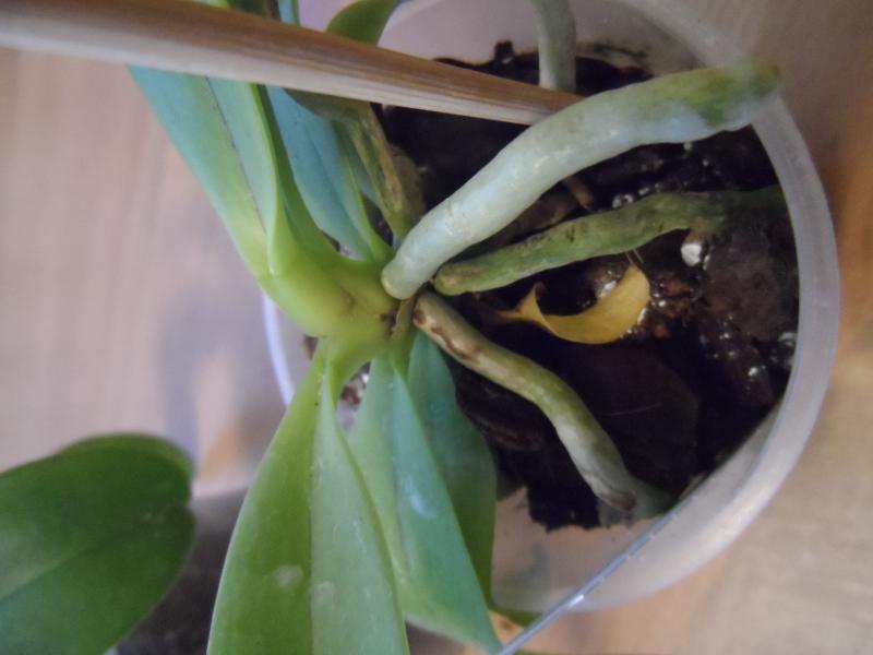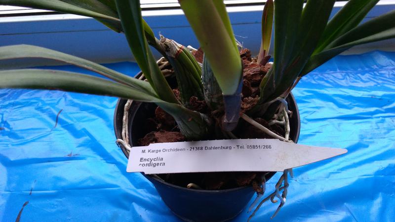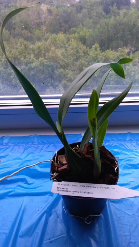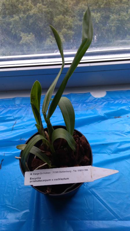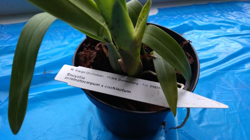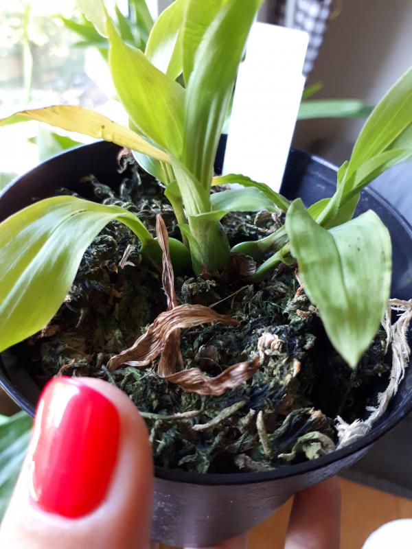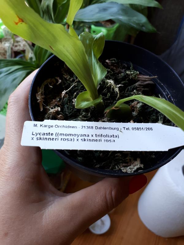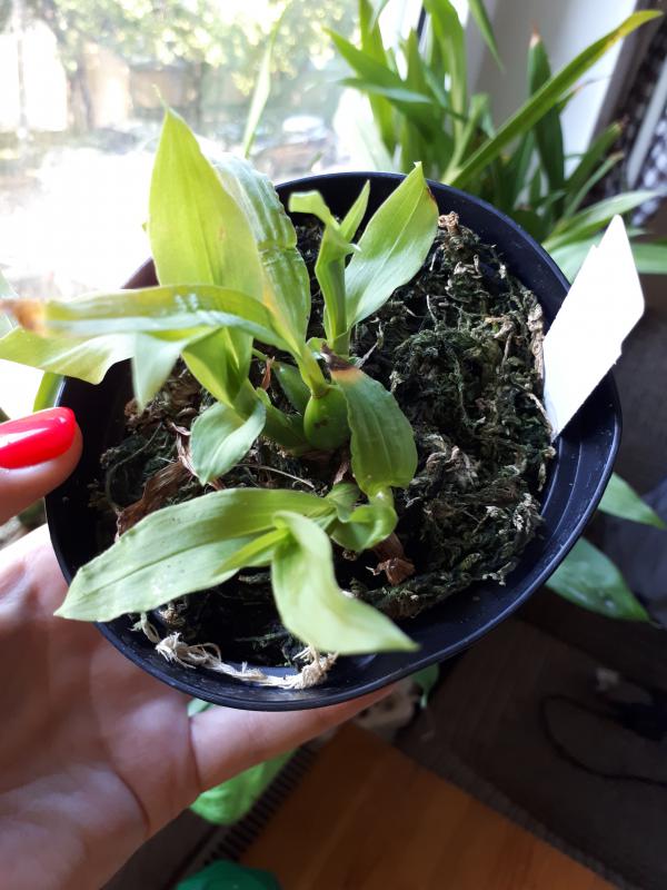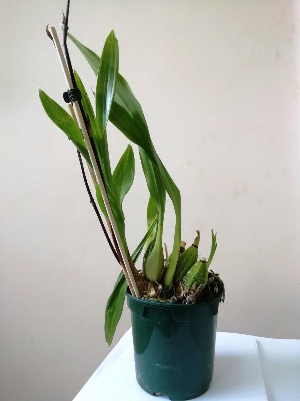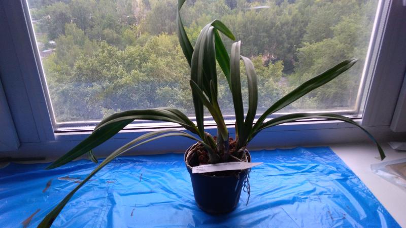Предполагаю, что Propetalum x Zygopetalum – шикарное растение, горшок очень большой, больше 13 см. Два засохших цветоноса. Есть новые росты. Корни живые. Посажен в кору. Правда, на бульбах есть чёрные пятна, но буду надеяться на лучшее.