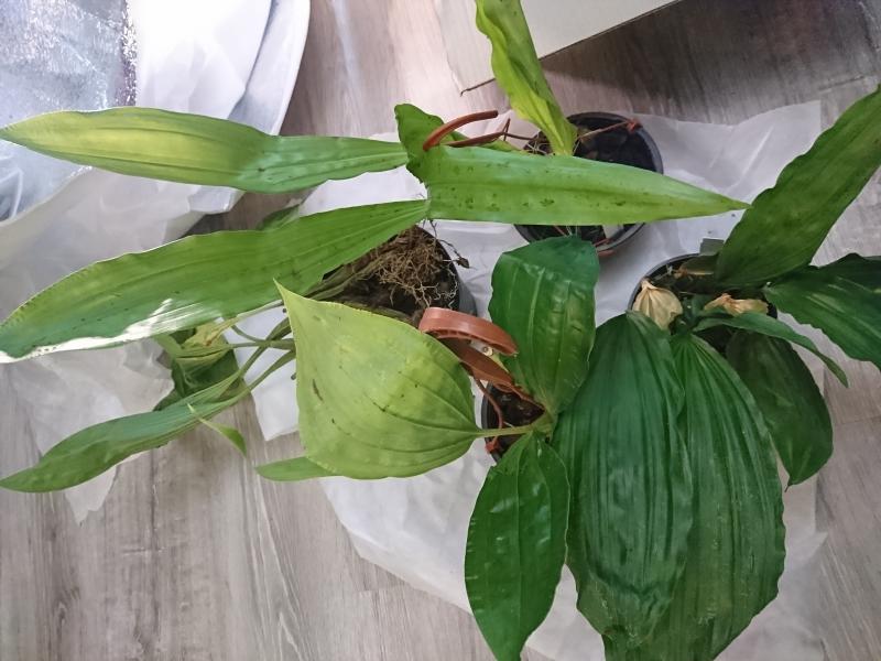 Cymbidium wenshanense горшок 8,5см, на дне чуть коры, сверху две трети мох- всё сухое. Бульба 1- 3см (жадины :girl_cray:) - 90% корней живые. Пятен, опрелостей, чёрных концов листьев нет.