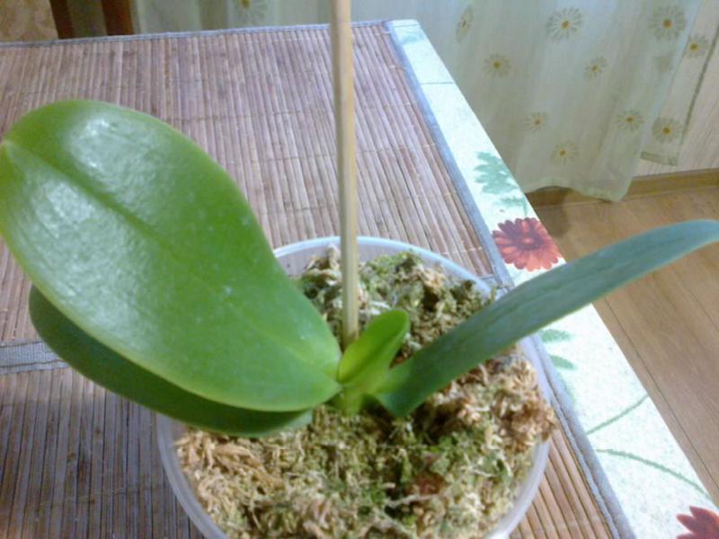 Phalaenopsis schilleriana x cassandra - малышка с упругими листиками в слегка влажном мхе, пока без цветоноса. Корней много, растут новые.