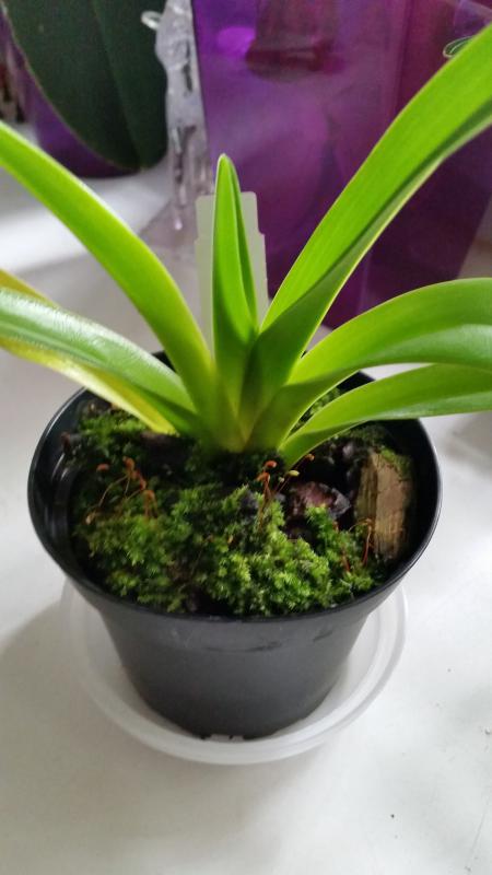 Paph. Armeniacum: одна небольшая розетка, молодых ростов нет, столонов нет, корней мало, из них несколько гнилых пришлось отрезать. Само растение чистое, однако при пересадке, в горшке оказались симпатичные сороконожки :girl_amaze: Вся живность из горшка осталась жива и отпущена на свободу :). Я рассчитывала на более качественный экземпляр... Судите сами:
