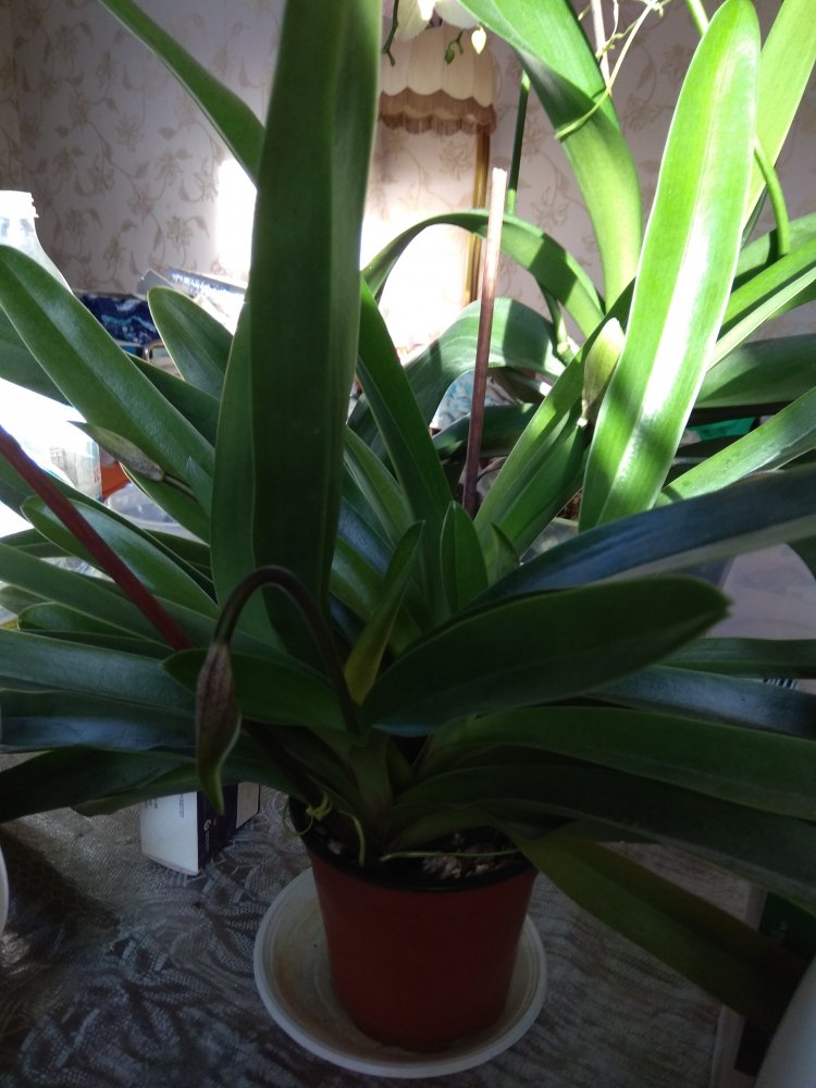 в январе на сутки отключили отопление по городу, температура понизилась и теперь цветок растит аж 5 цветоносов!