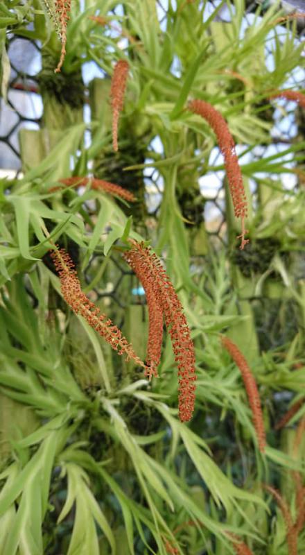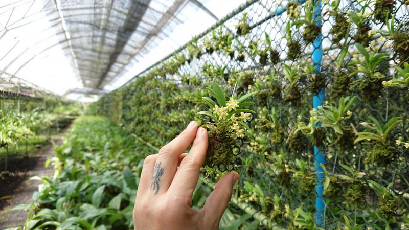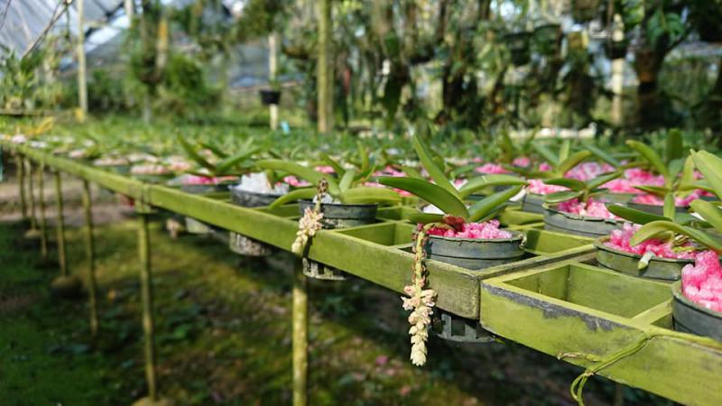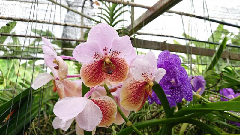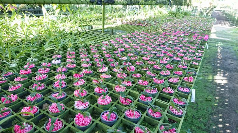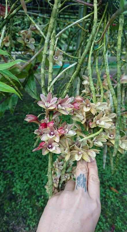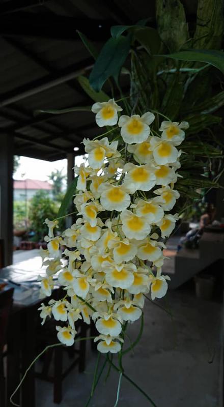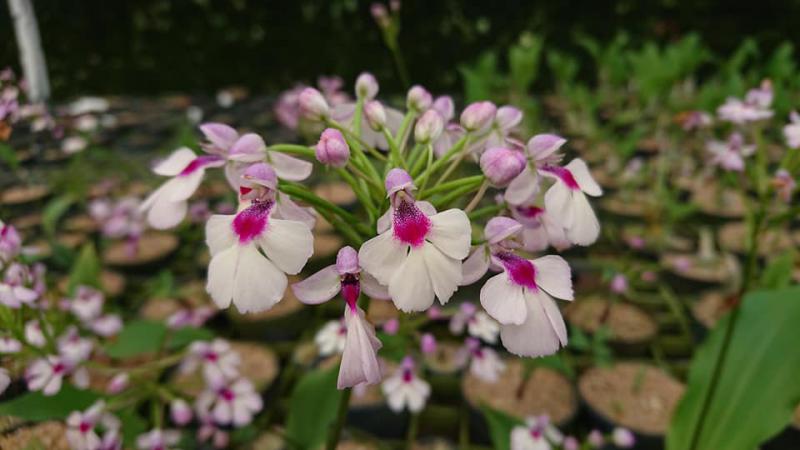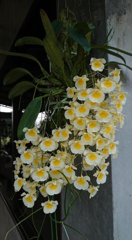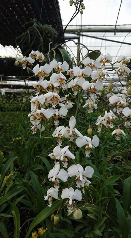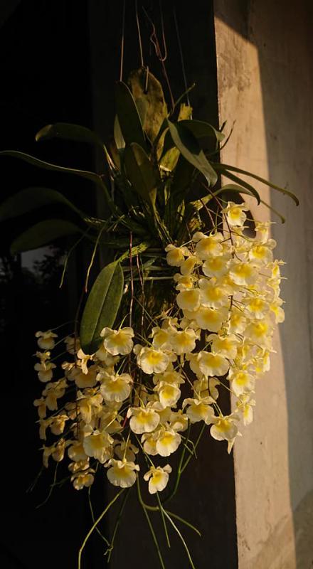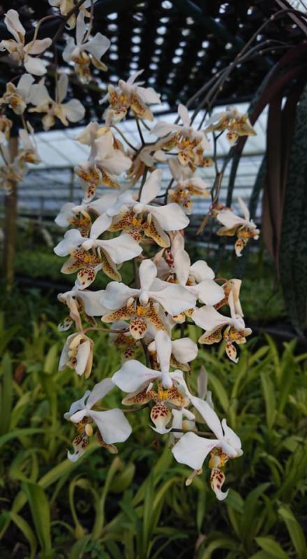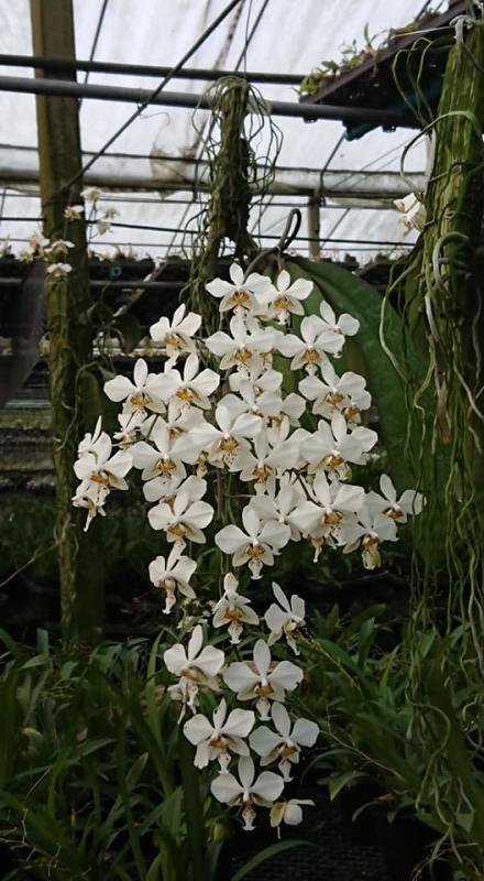 Vanda sanderiana обычная и альба. Родом Vanda sanderiana с Филиппин, где произрастает эпифитно на деревьях на высоте около 500 метров над уровнем моря. Орхидея моноподиальная, т.е. состоящая из одного длинного прямого стебля, достаточно густо покрытого листьями, и толстыми эпифитными корнями. Стебель в длину может достигать до 60-100 см, а первые цветы появляются, как правило, при достижении им 30 см барьера. Листья V-образной формы, выгнутые, достаточно жёсткие, раздвоены на кончиках, размером около 40 см длиной. Цветоносы прямые, появляются из пазух между листьями, размером около 30 см длиной и несут в себе от 6 до 10 цветков. Цветы очень сильно варьируют в окрасе, но всегда состоят минимум из двух оттенков (верхняя половина цветка одного окраса, а нижняя - другого), размером около 10 см в диаметре. Боковые сепалии чаще всего жёлтые, жёлто-зелёные или просто зелёные, покрыты красными, коричневыми или красно-коричневыми пятнами и штрихами. Верхняя сепалия и петалии, как правило, окрасом белые, желтоватые или розовые. Губа двойная, такого же окраса, как и боковые сепалии, только немного темнее, шпоры не имеет, именно её оригинальное строение (такое нетипичное для рода Vanda) и явилось тем ключевым критерием переноса данного вида орхидей из рода Vanda в самостоятельную группу Euanthe, однако, в октябре 2012 года всё было возвращено обратно.