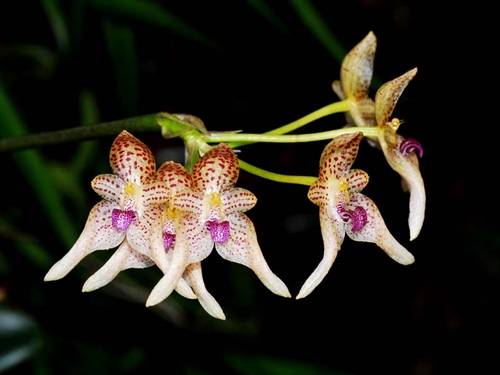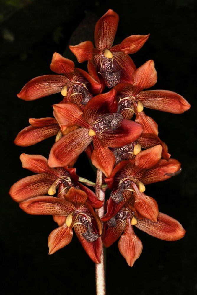 Главной особенностью данного вида орхидей является то, что цветоносы появляются на старых прошлогодних псевдобульбах, т.е. чтобы зацвести, каждая псевдобульба должна пройти два периода покоя: в этом и в следующем году.