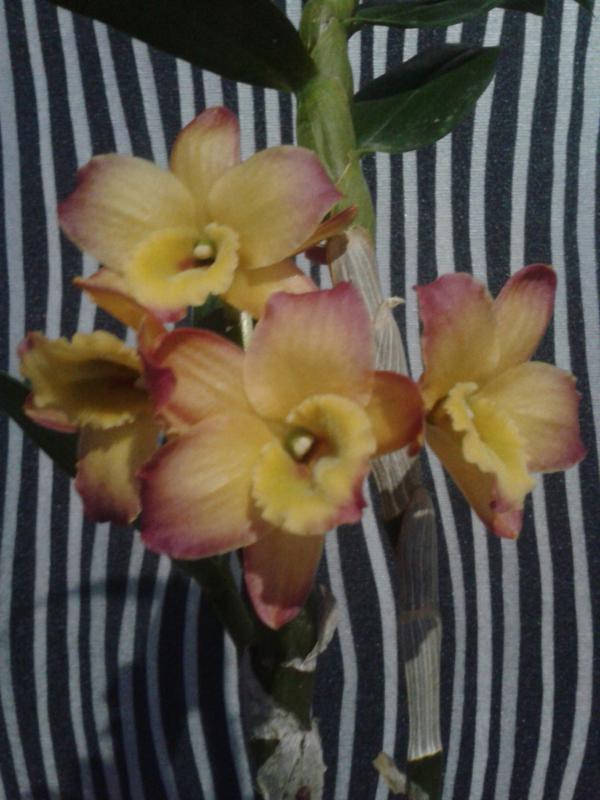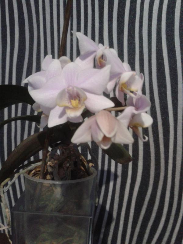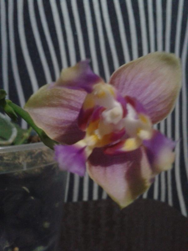 Пришла с поломанным цветоносом, повреждениями на бульбе (что сказалось на листиках). При этом имелся новенький молодой рост в несколько см, который после получения никак подрос. И вот она подумала-подумала и решила все-таки процвести, дорастила сломанный цветонос.