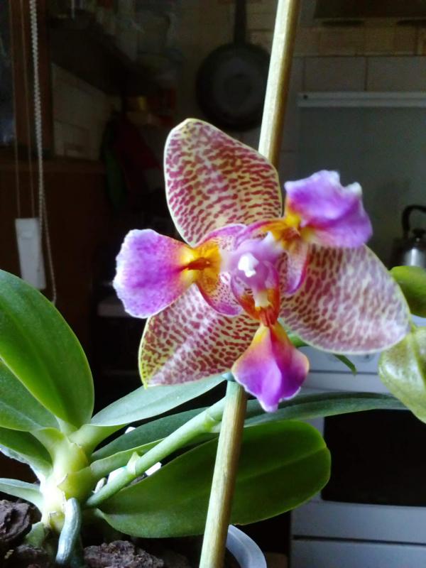 Сидит она у меня в орхиате в керамическом горшке. Кормлю с весны до осени, хотя растет она с лета до конца зимы. У нее цикл, как у пурпураты. Кормлю органикой, конским навозом. Голодовка получается автоматически зимой, зимой не кормлю никого. Полив летом часто, у меня жарко и высыхает все быстро и автоматически снижается к зиме, так как снижаются температуры. Сказать, что сушу не могу, ориентируюсь на температуры и состояние растения. В солнечные зимние дни у меня днем жарко, поэтому полив все равно есть, но меньше, практически легкое опрыскивание верхнего слоя. Что слилось в поддон, то слилось. Света получает много.