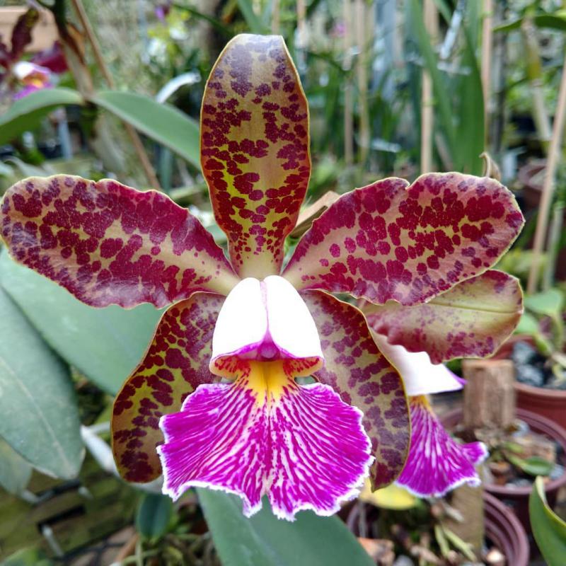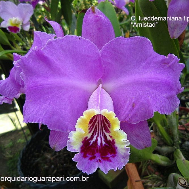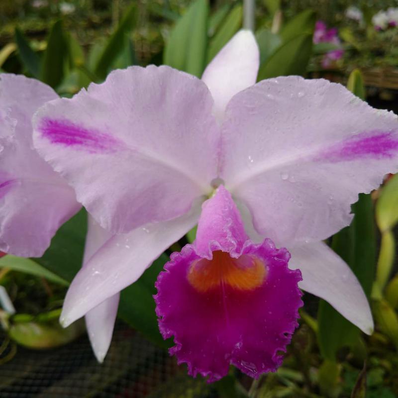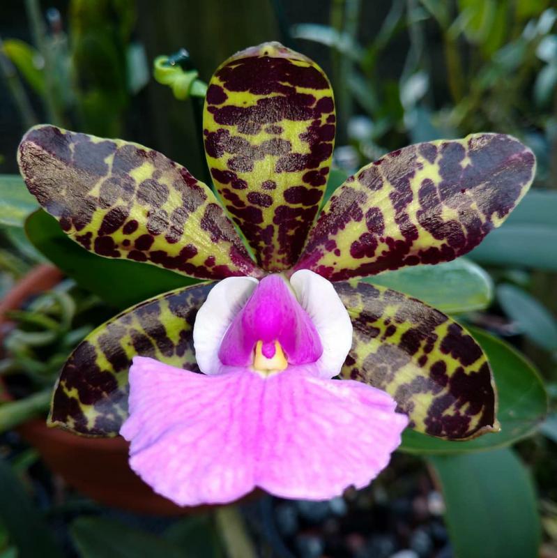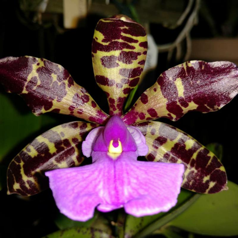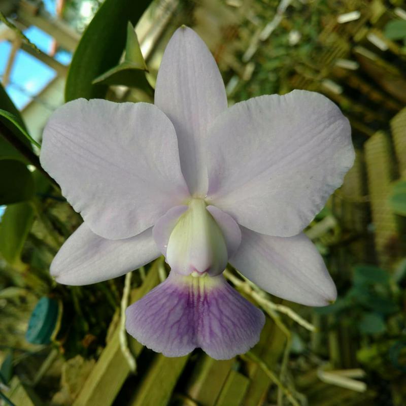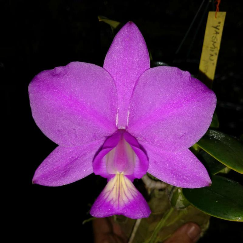 Cattleya nobilior var. amaliae - цветы голубовато-розовые, губа жёлтая с чёрно-пурпурными прожилками; общий размер растения больше, чем обычно.