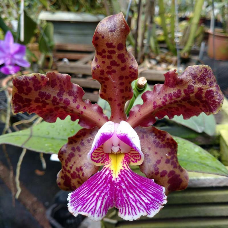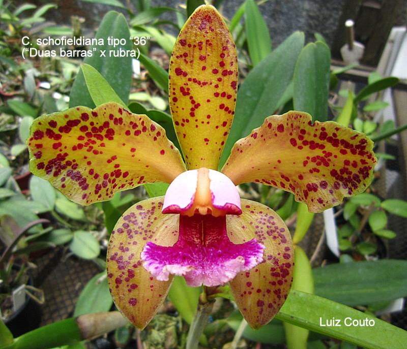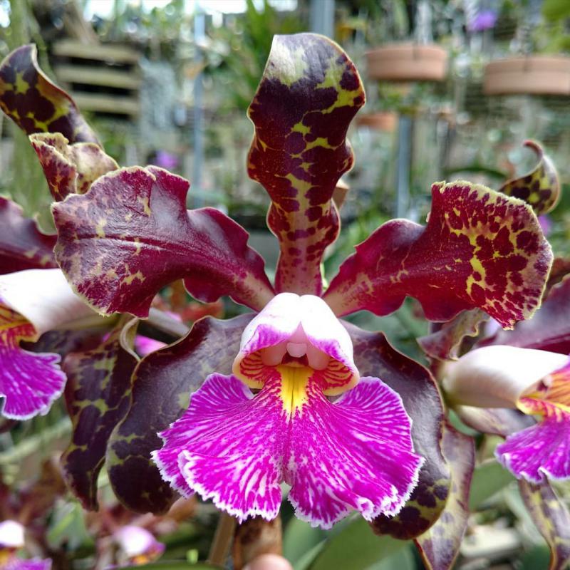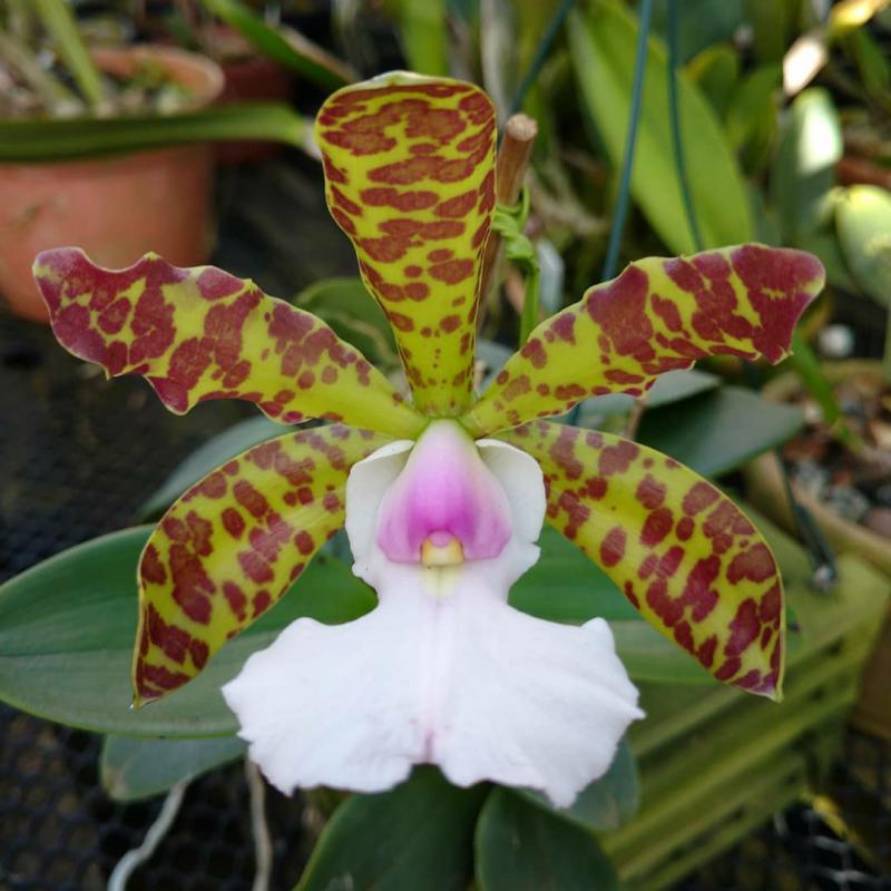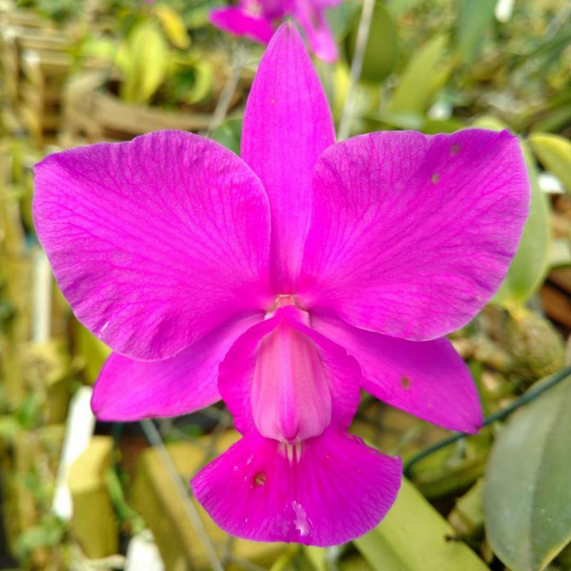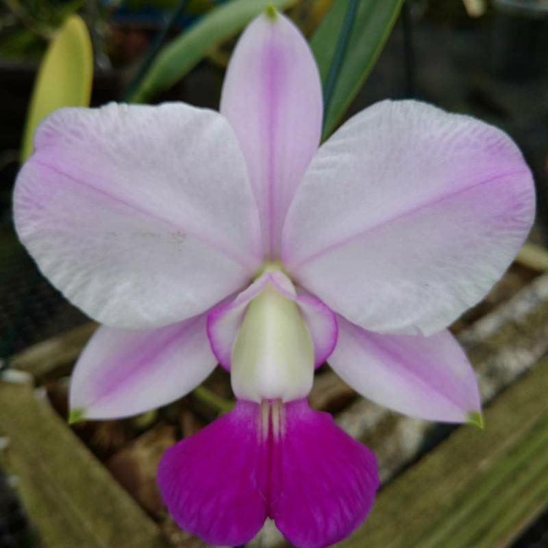 Cattleya nobilior var. amaliae - цветы голубовато-розовые, губа жёлтая с чёрно-пурпурными прожилками; общий размер растения больше, чем обычно.