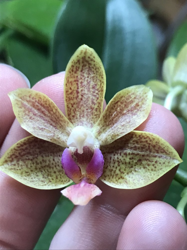 Вот такой распустился Caribbean Sanset x minus. Получен в июне этого года. Он вроде сиреневый должен быть😊 форма цветка его, а вот цвет..