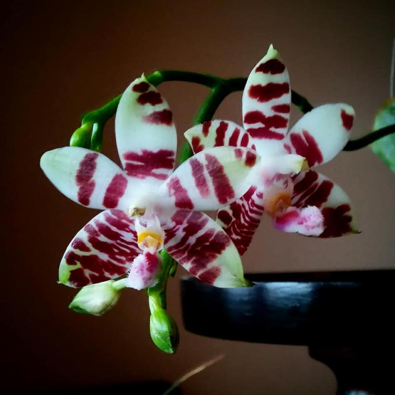 А вдруг, именно у Вас и получится, как в спеце, раз уже был ране цветонос. А пятнышки вытянутся в полосочки! Вдруг именно Ваш сфоткали!Нет еще, но чуда не будет, уже видны пятнышки на бутонах...