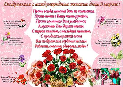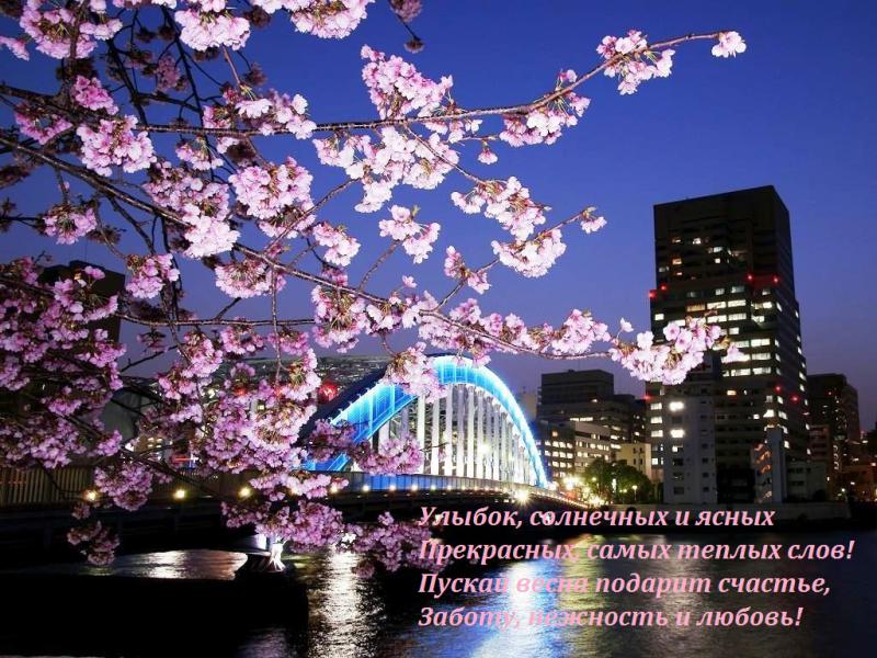 В этот самый светлый весенний праздник желаю, чтобы Ваши руки были всегда нежными, глаза веселыми, улыбка загадочной, а сердце открытым для любви. С праздником, с Международным женским днем!