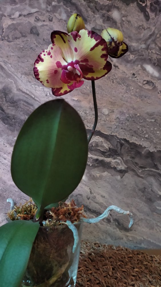 Прошу прощения, предположительно, это гибрид - P.Cherry Spot alba (P.pulchra (alba) x P.bellina (alba)) Вариант цветения.Мой представитель данного Спецпредложения оказался не столь ярким) Жду второй бутон.