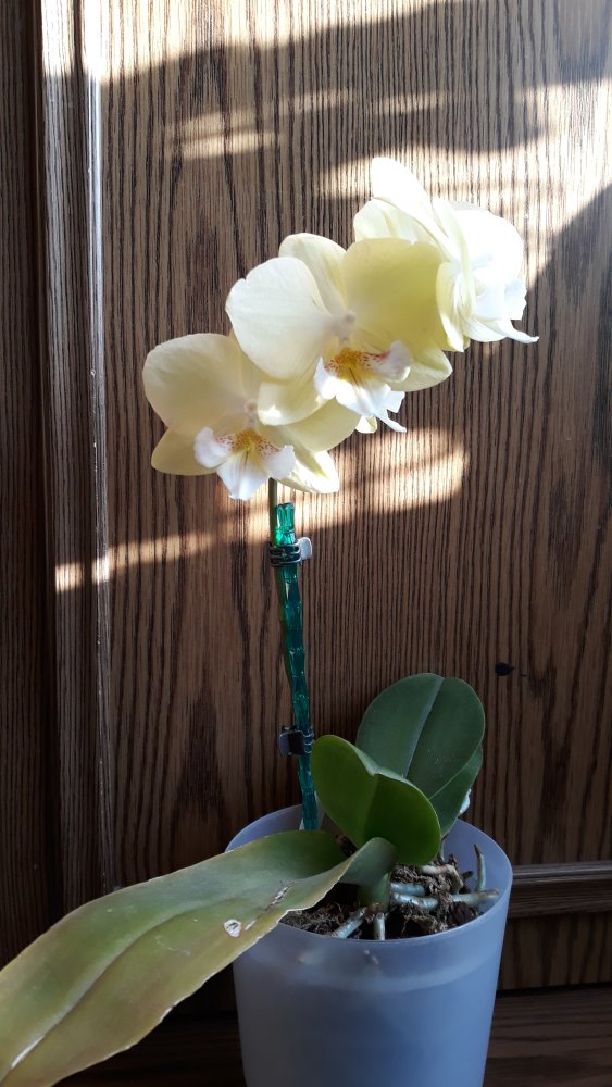 Вот такой миляга. Он несколько бледнее, чем на фото (может, выцвел, конечно) и более в лимонно-желтый оттенок. Получен в ноябре 2020. Дорастил два листа помельче оранжирейных и выкормил 4 цветочка 7-7,5 см, не пахнет
