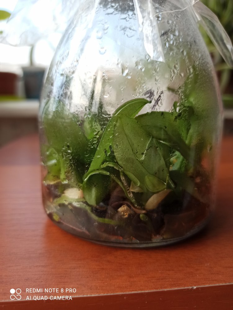 Получила фласку заказ 198089, ожидание и реальность у меня разошлись. Подскажите, её надо доращивать или уже надо рассаживать. Это моя первая фласка. На картинке продавца вся колба была заполнена листьями. ex48853