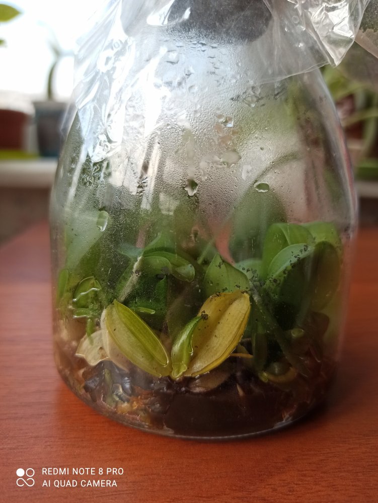 Тоже для опыта приобрела фласку - сюрприз. Пришла с биркой P.Yaphon Nicegirl x Zheng Min Tyrannosaurus в апреле рассадила в мелкую кору и мох в отдельные стаканчики и поставила вместе со всеми под лампу. получилось 11 штук. Все 11 живы-здоровы, все корни на месте). Мне показались эти растения более неприхотливыми чем некоторые пришедшие с ферм. Тем еще адаптацию проходить. конечно, единственный недостаток, придется подождать цветения))
