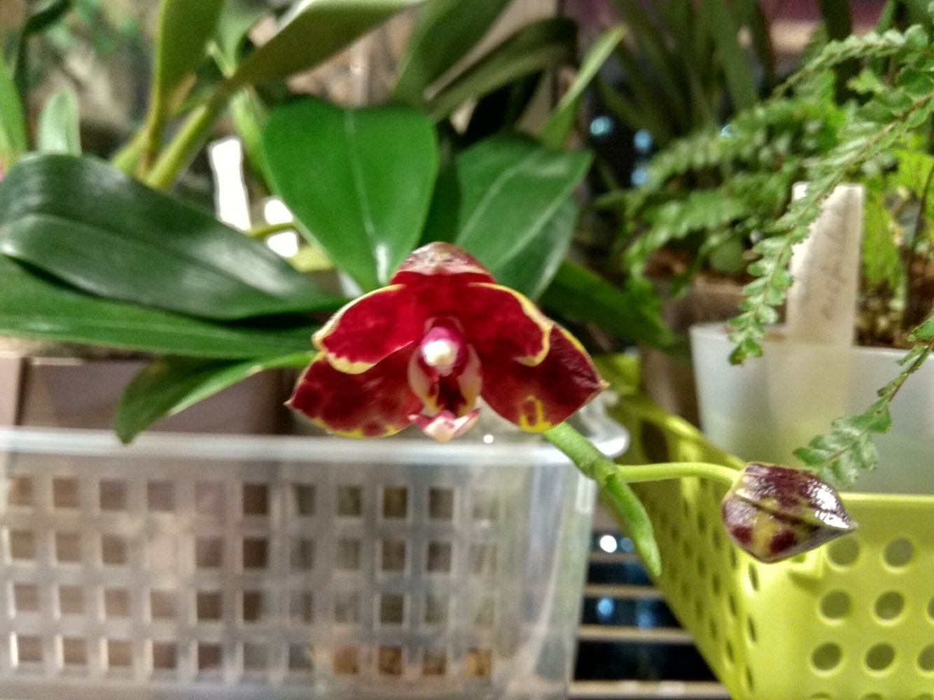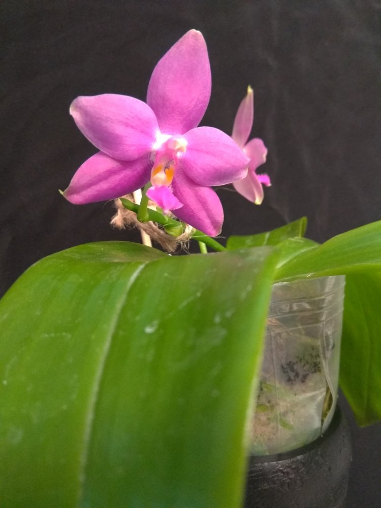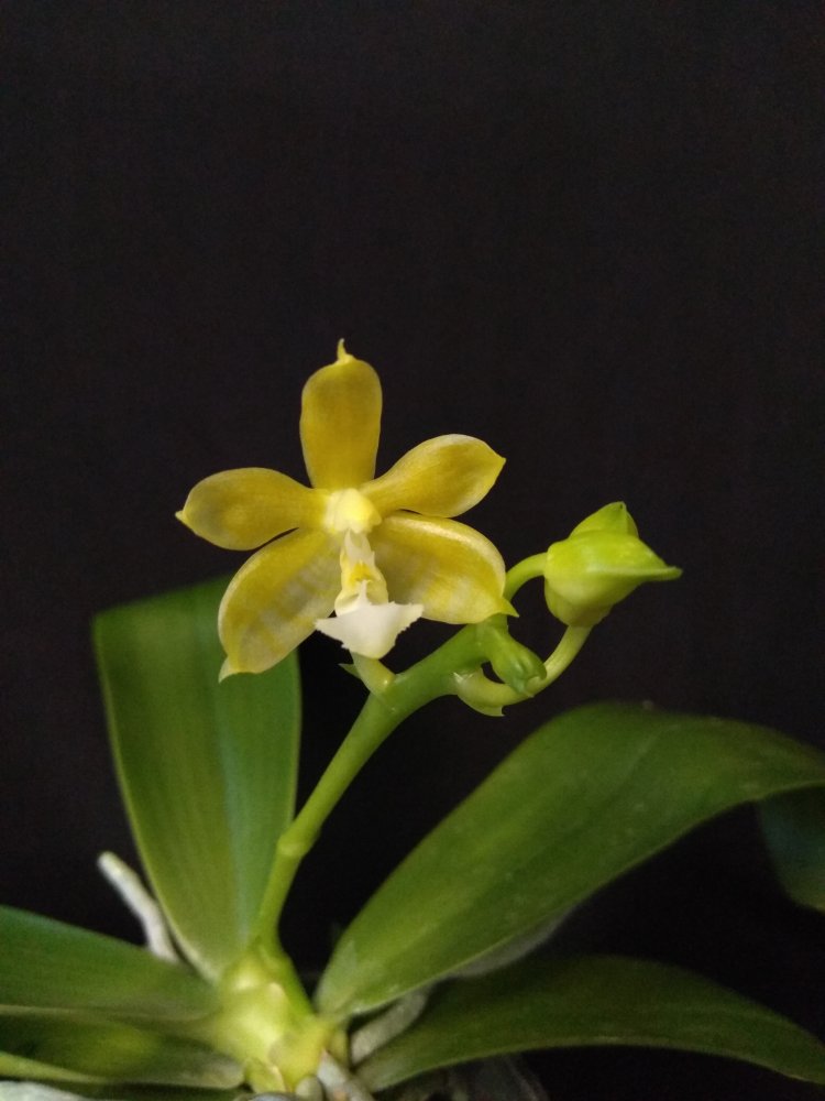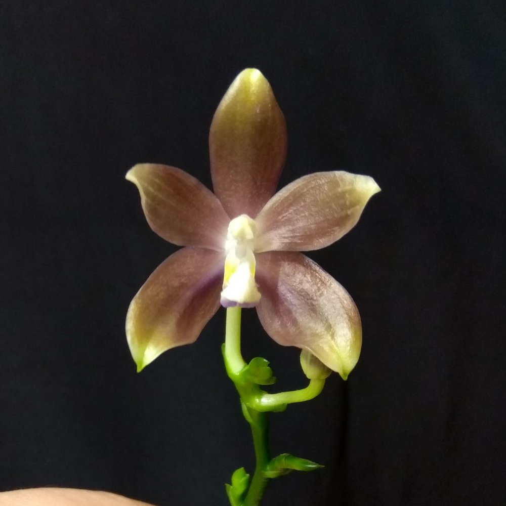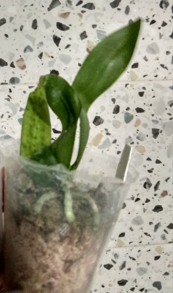 Phal. Golden Peoker x Sogo Lawrence, получен в июле 23. Отрастил лист и цветонос, но ещё не до конца распустился )