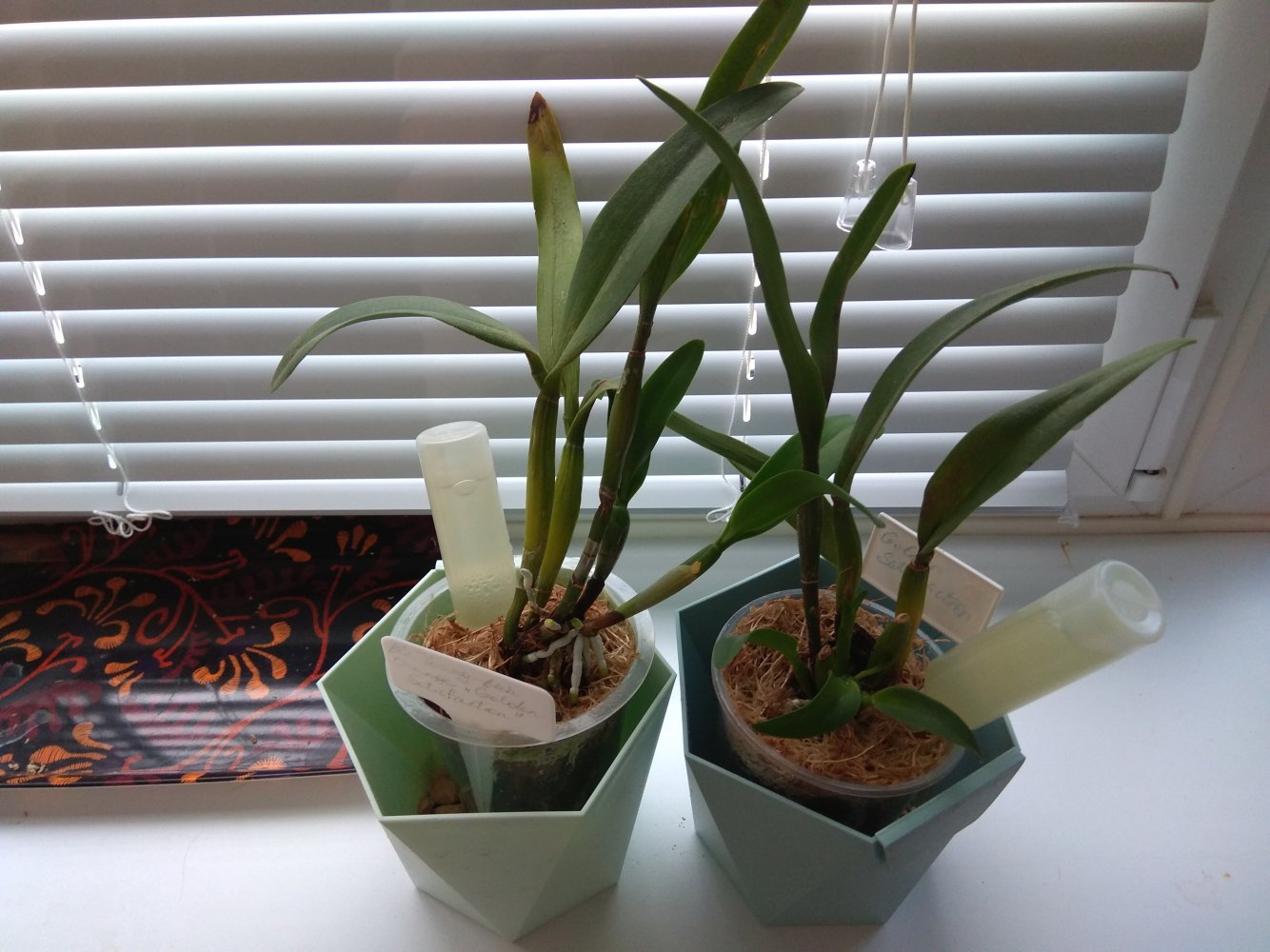 Я не знаю, что это - затянувшийся спор на тему "ноги-крылья-хвосты" или их, как бывших одногоршечниц, объединяет какая-то невидимая ризома, согласно которой, они на эусоциальный манер (как пчелы) решили, что одна займётся выращиванием псевдобульб, а вторая будет растить к ним корни, но выглядят они обе довольно странно ) Но при этом, конечно, они обе совершенно здоровы и прекрасно развиваются, но по разному )