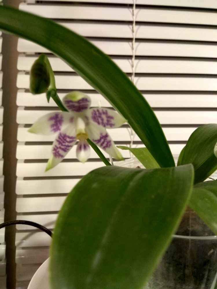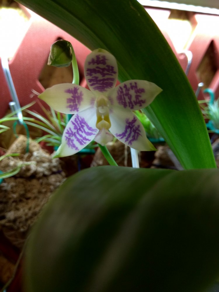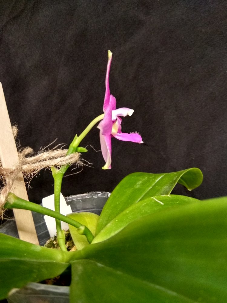 Удивительный тугодум оказался - только недавно сподобился на первое цветение. Я считаю, что цветение по сорту, у нас, конечно, не все лепестки окрашены, но говорят, что такое с тетрасписами периодически случается. Очень красивый цвет на 2-х лепестках и губе.