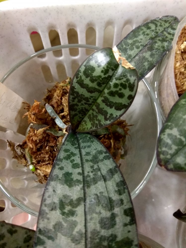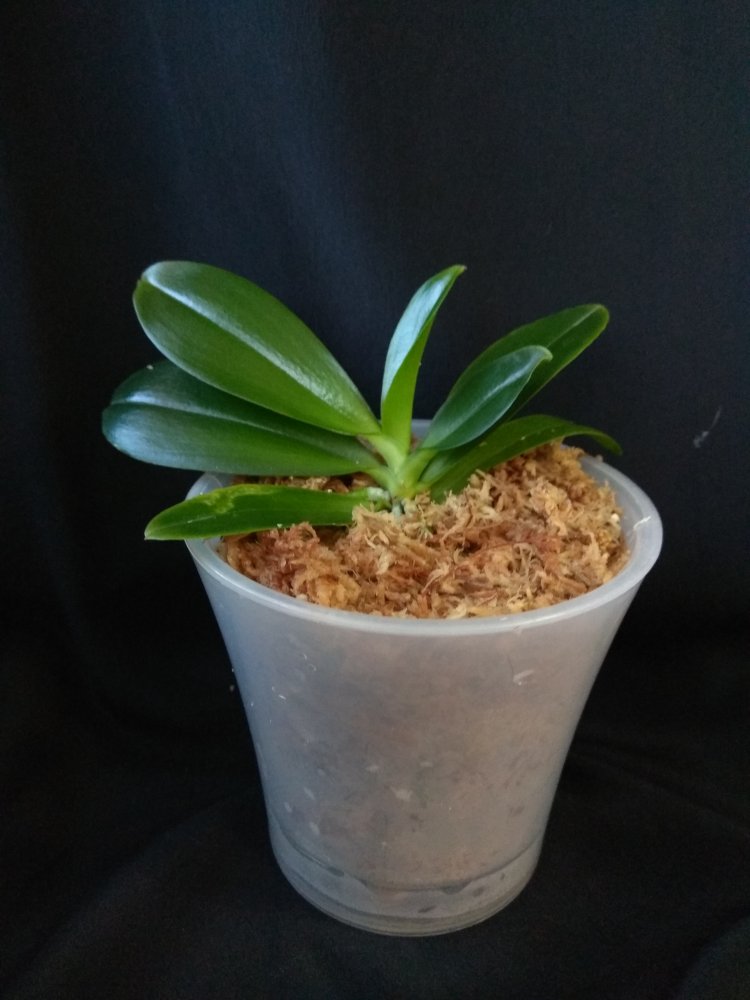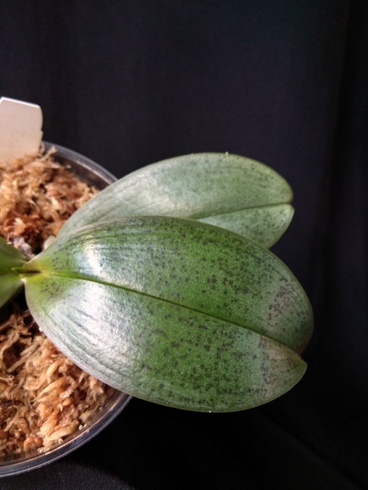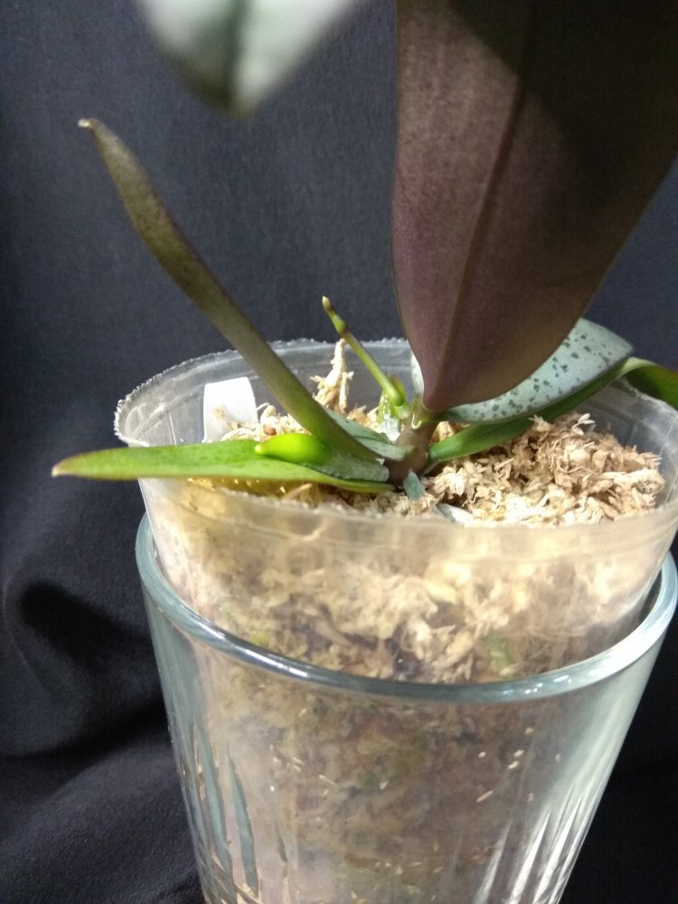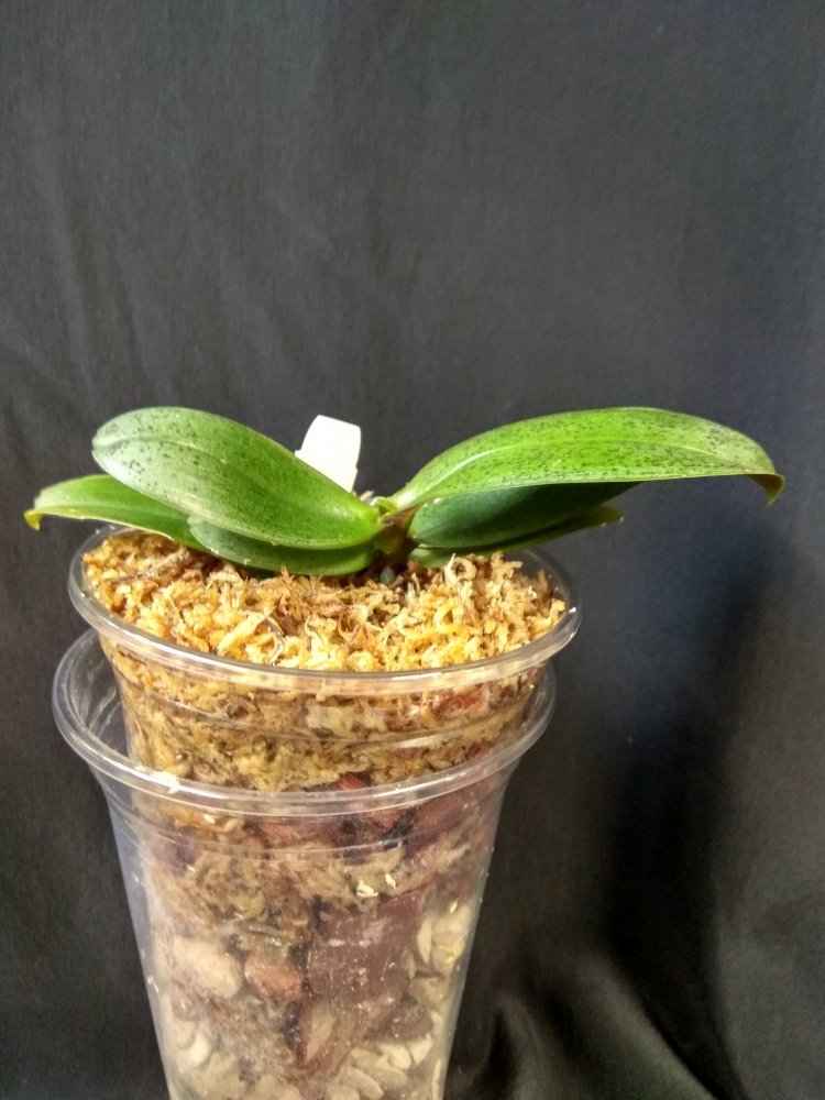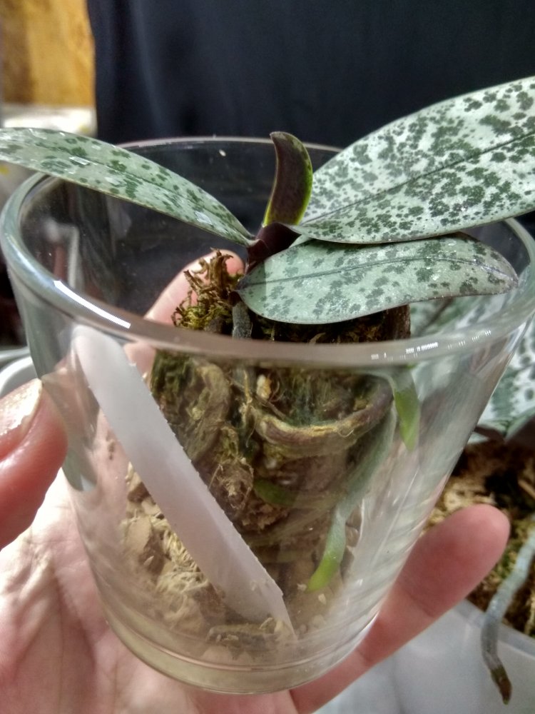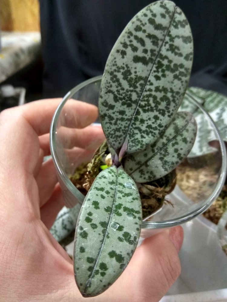 Phal. San Shia Sparks (p.tetraspis coffee x phillipinensis) - получен в октябре 2023 в размере 2,5, но что-то у нас пошло не так и он очень долго ругался, брыкался, бросался корнями и листьями, а сейчас, вроде успокоился. На мой взгляд, определить наличие тетрасписа совершенно невозможно, но листики, конечно, очень миленькие )
