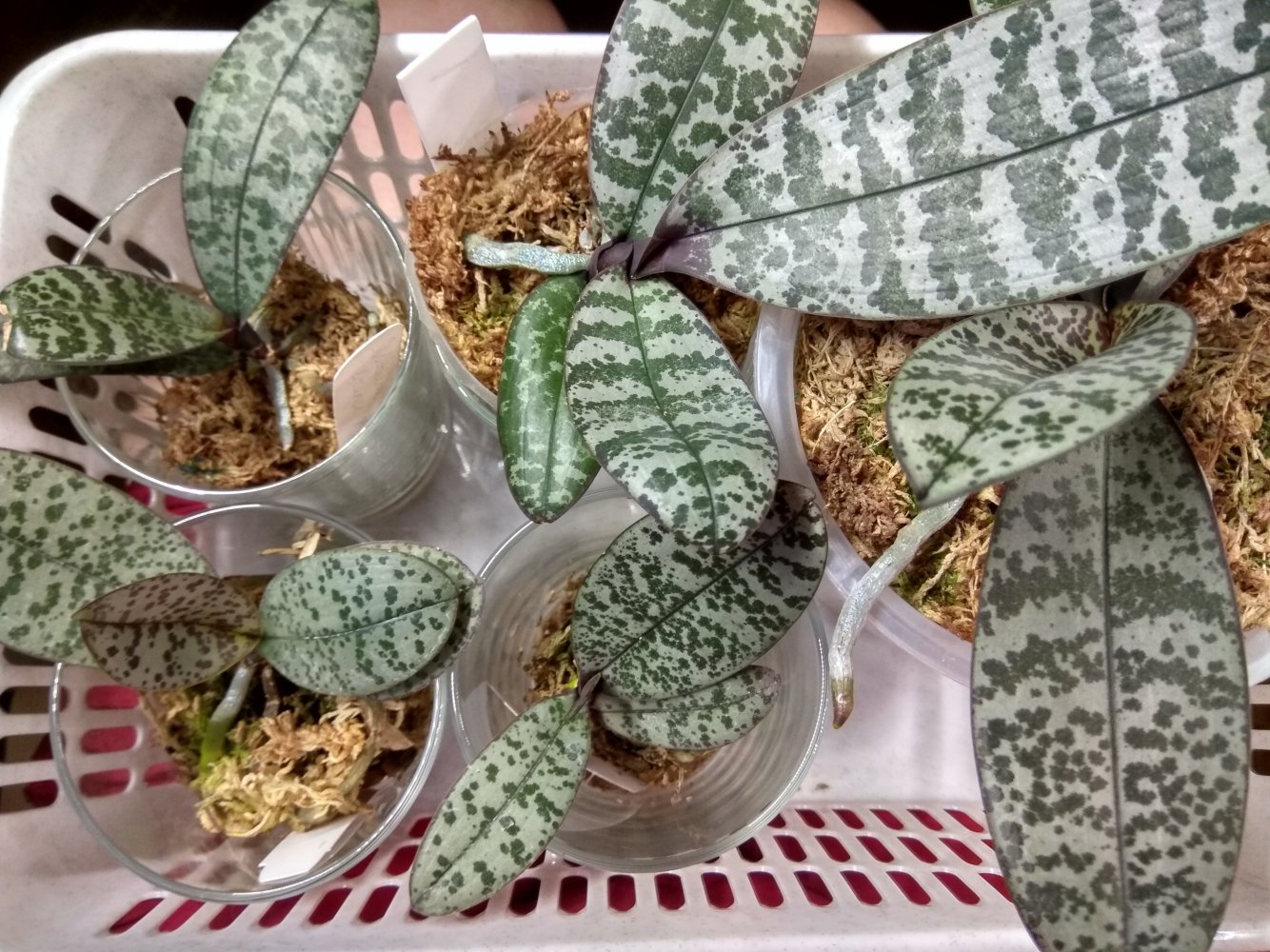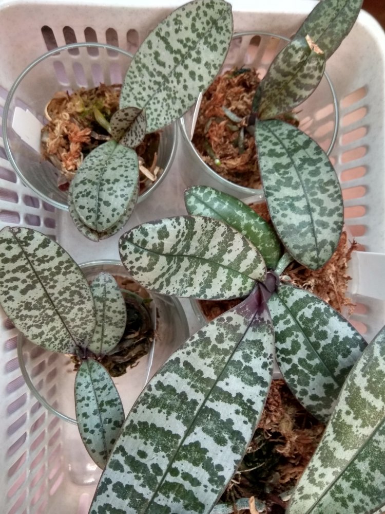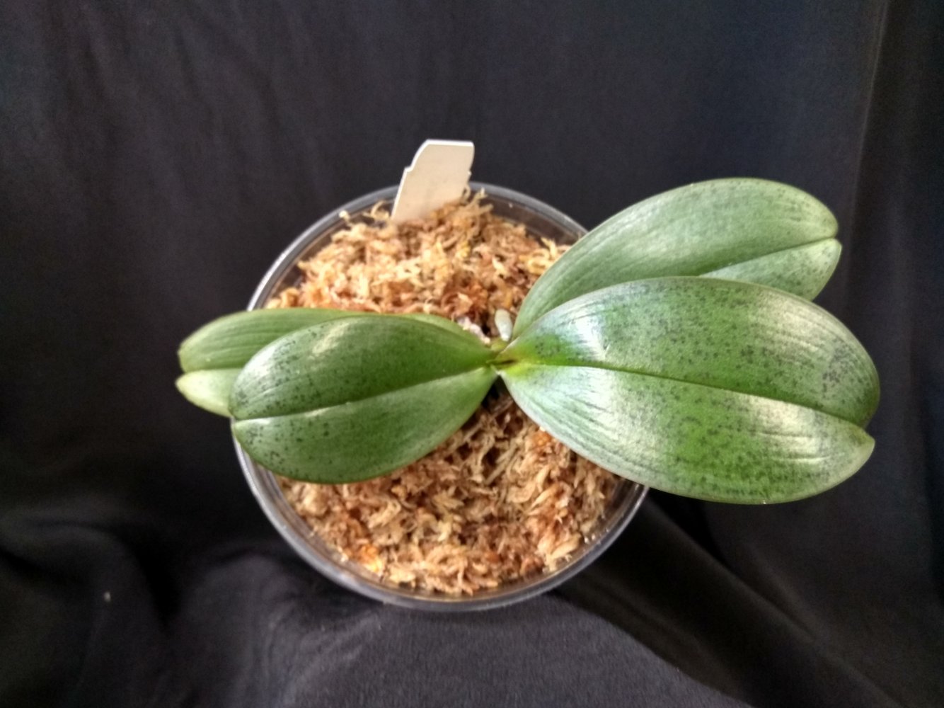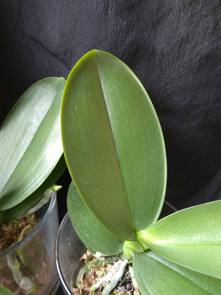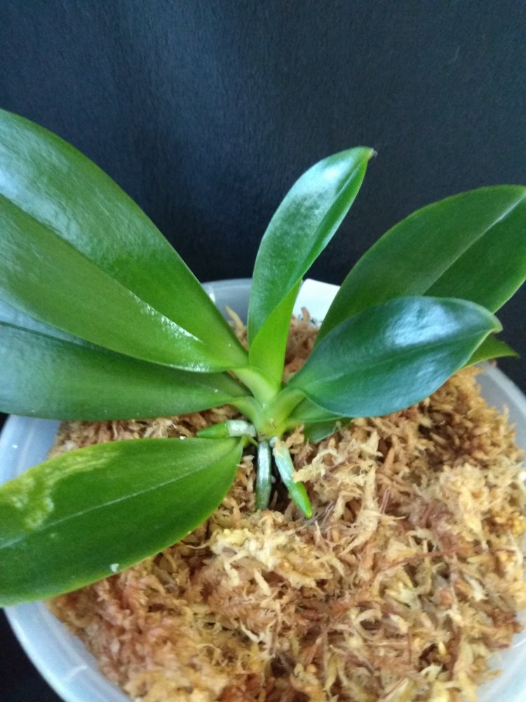 Phal. San Shia Sparks (p.tetraspis coffee x phillipinensis) - получен в октябре 2023 в размере 2,5, но что-то у нас пошло не так и он очень долго ругался, брыкался, бросался корнями и листьями, а сейчас, вроде успокоился. На мой взгляд, определить наличие тетрасписа совершенно невозможно, но листики, конечно, очень миленькие )