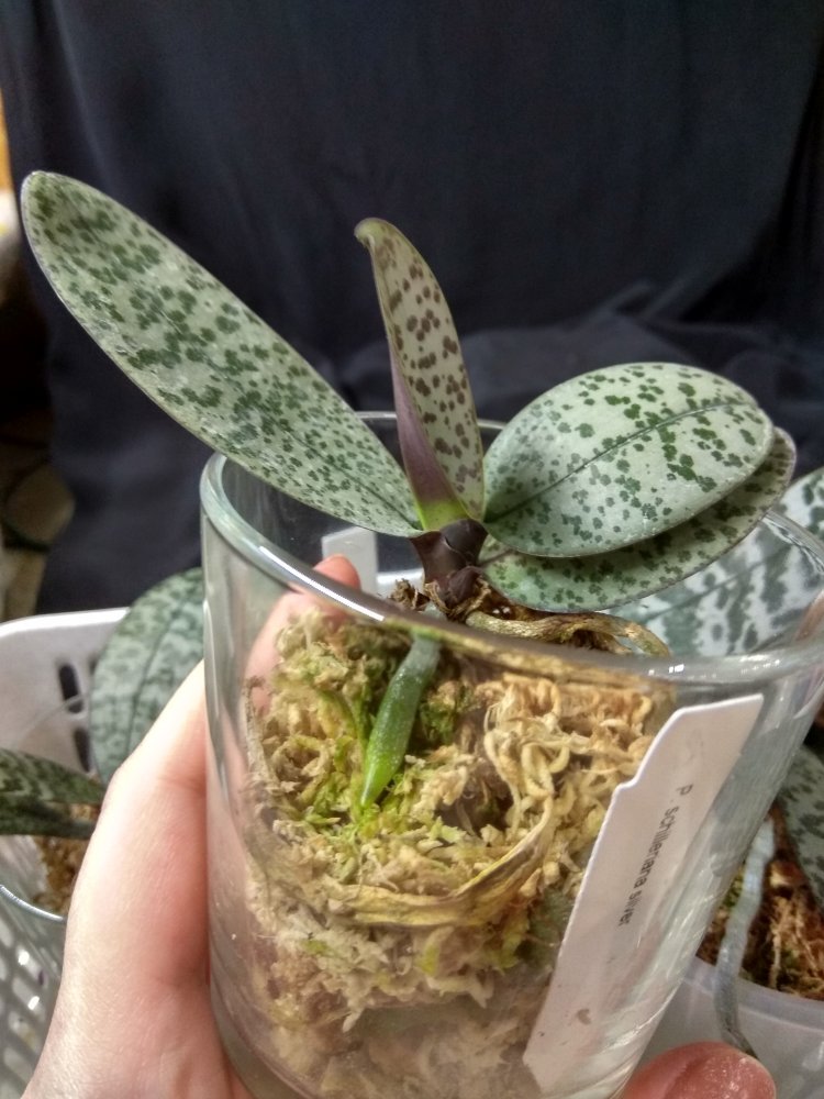 Последние дней 10, в рамках проверки теории "о хороших соседях" (выведенной как антитеза теории о том, что орхидеи могут плохо расти из-за того, что им не нравятся соседи) сидит в специальном "лотке для шиллериан".